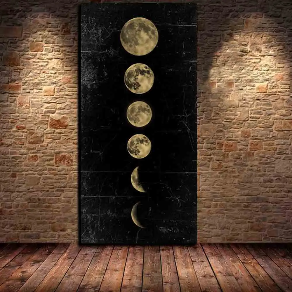 Плакат на холсте с фазой черной и белой Луны, Художественная печать...