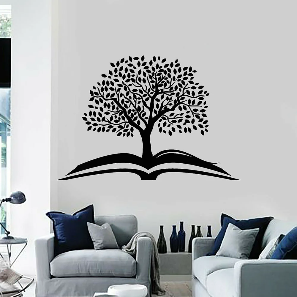 Книжные наклейки на стену для спальни, художественная роспись, книжка с деревом, Виниловая наклейка на стену, декор для библиотеки, школы, класса, виниловая стеклянная наклейка s C274