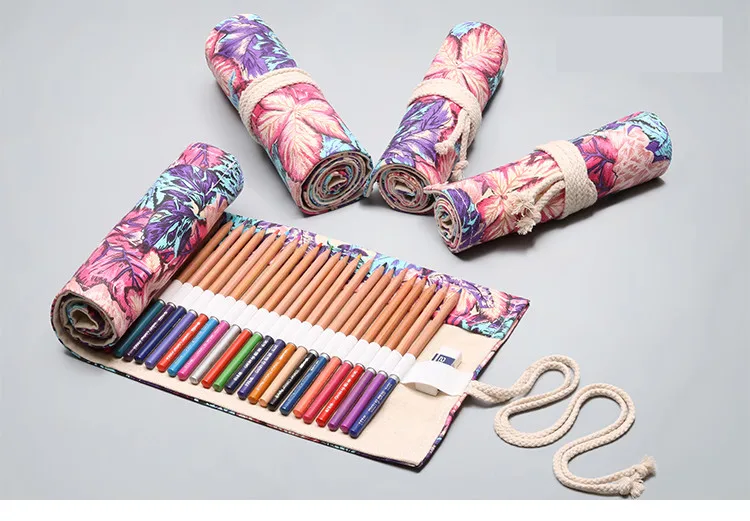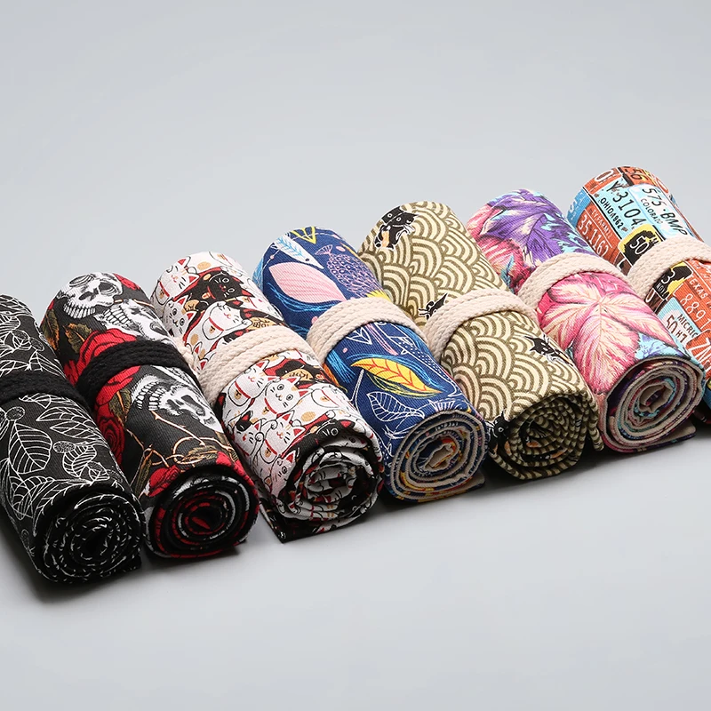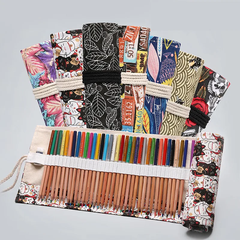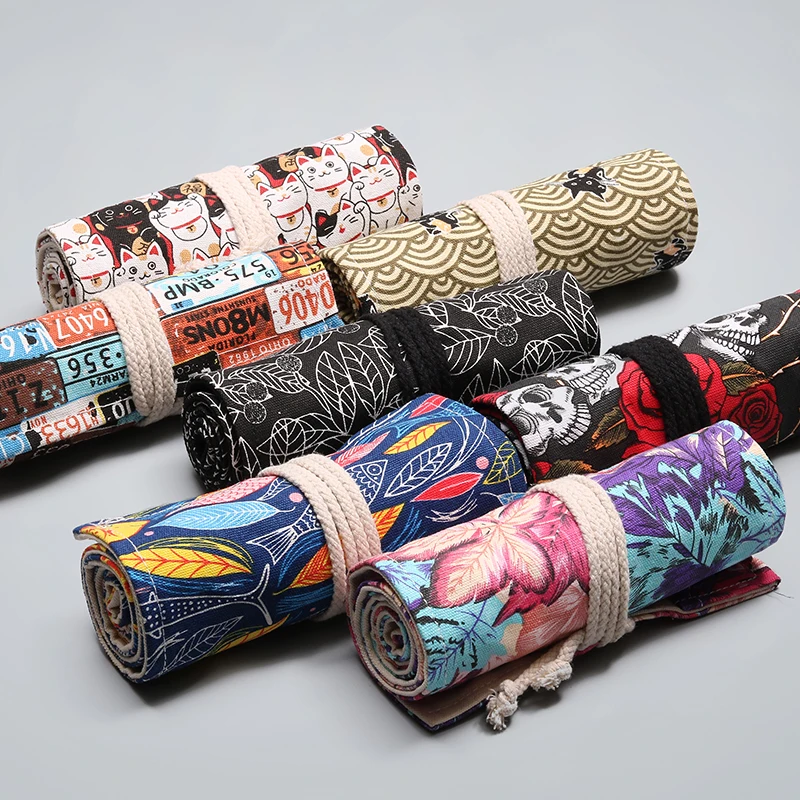 Чехол для карандашей с 36 отверстиями, школьные принадлежности с изображением кошек, холщовый чехол для рулона, косметическая Кисть для макияжа для студентов, складские принадлежности