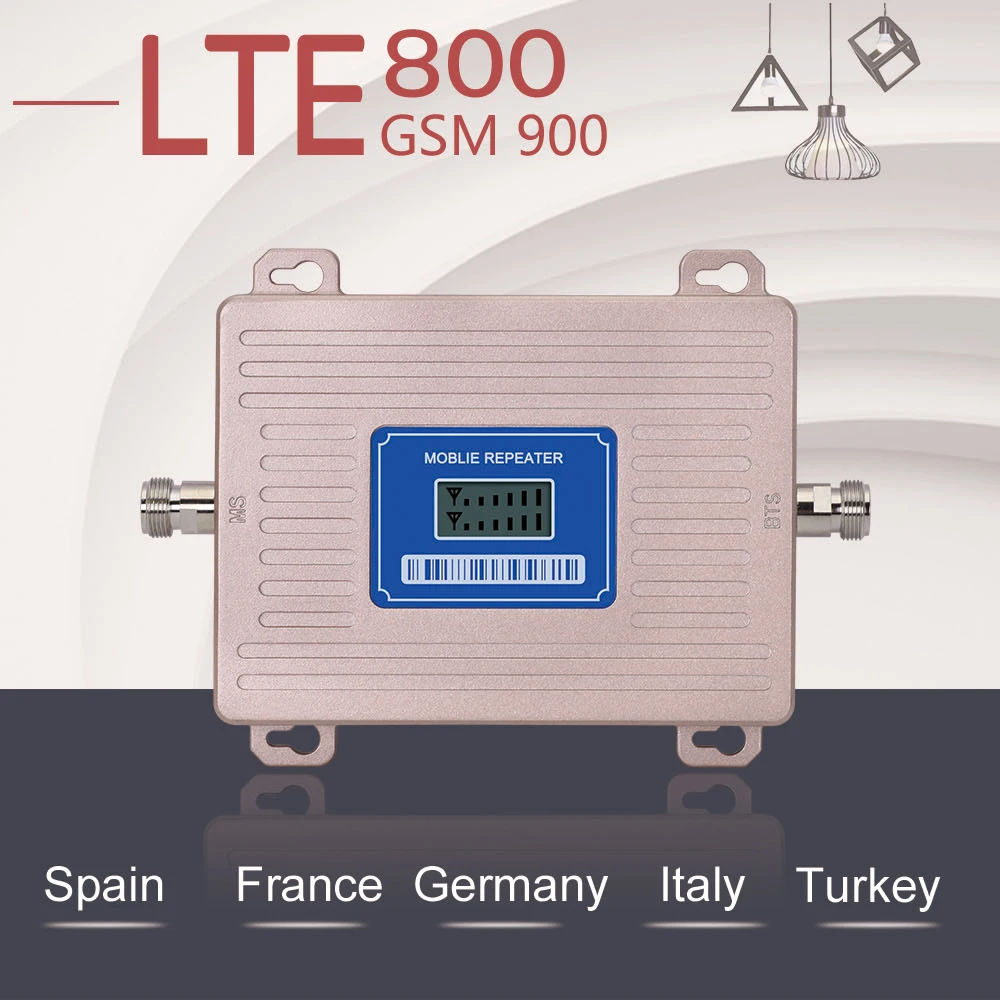 Усилитель сотового сигнала европейского стандарта LTE 800 GSM 900 МГц, ретранслятор сотового сигнала 2G 3G 4G, двухдиапазонный LTE усилитель диапазона 20 полос 8 ЖК-дисплей @