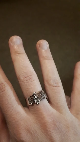 Кольцо капец неудобное!!!!! По краям скрипичные ключи которые впиваются в коду между пальцами! Носить можно, только если подпилить. Но за такие деньги- норм.