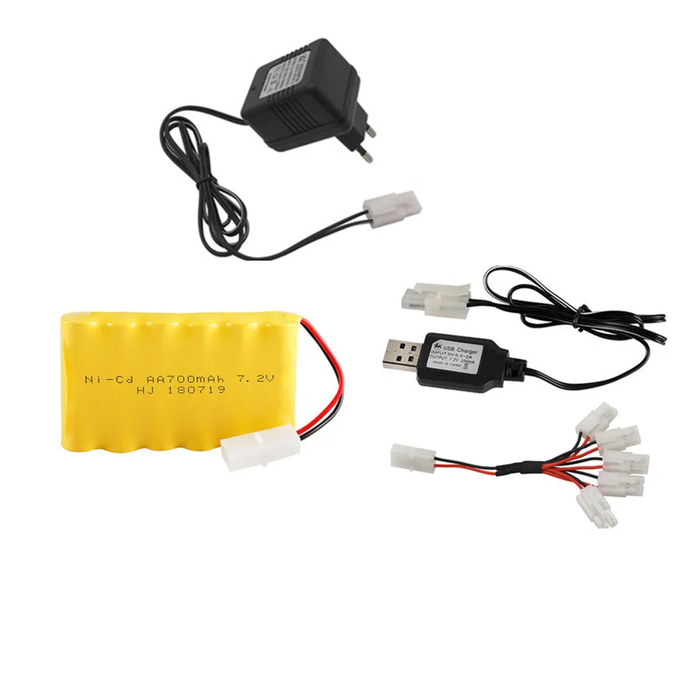 Никель-кадмиевая аккумуляторная батарея 7,2 в 700 мАч + зарядное устройство для радиоуправляемых игрушечных автомобилей, лодок, танков, поездов, робот-пистолет, Стандартный Аккумулятор AA 7,2 В, от 1 шт. до 2 шт.