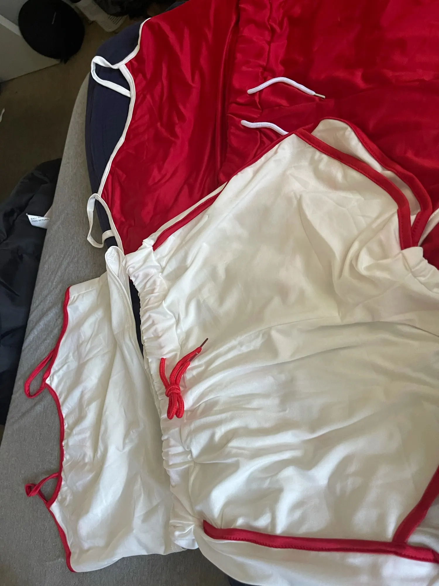 Очень милый комплект. Материал на самом деле очень красивый и очень эластичный, но формирует форму. Я обязательно получу еще несколько цветов