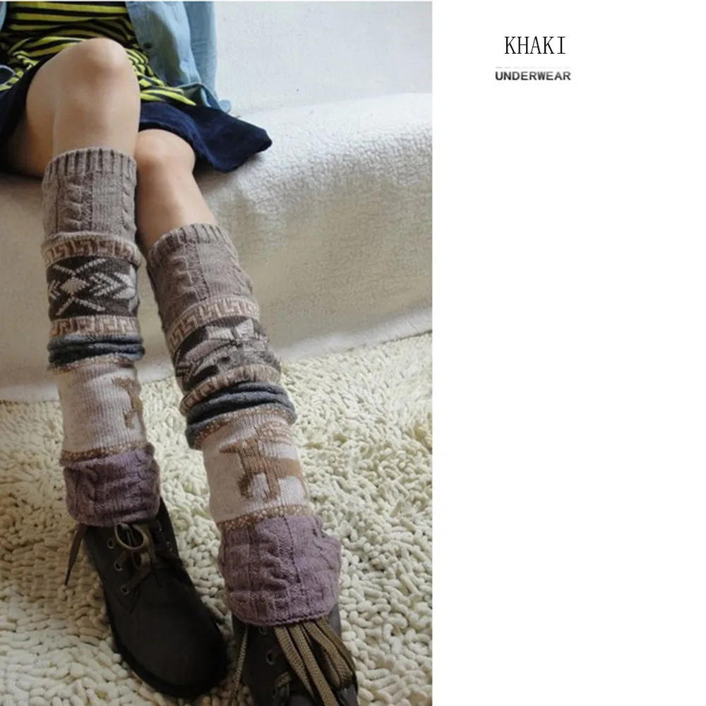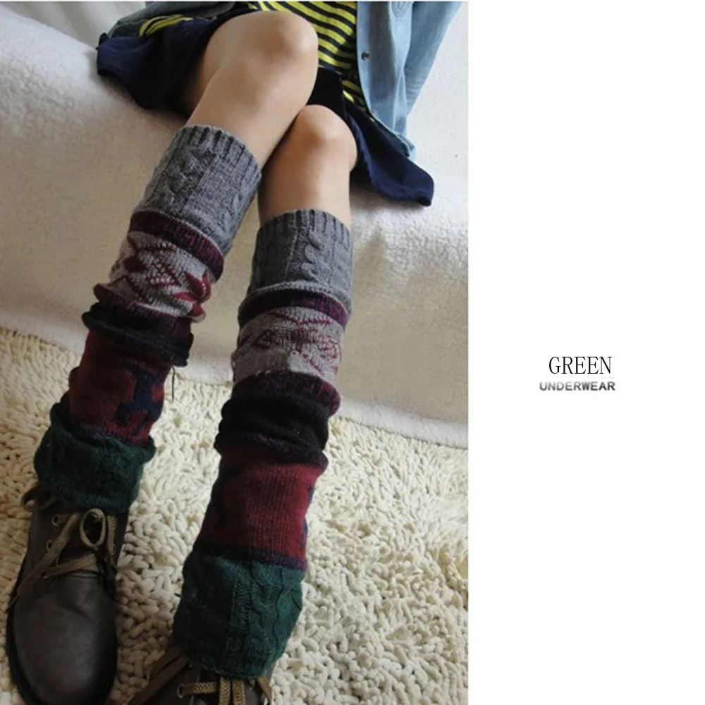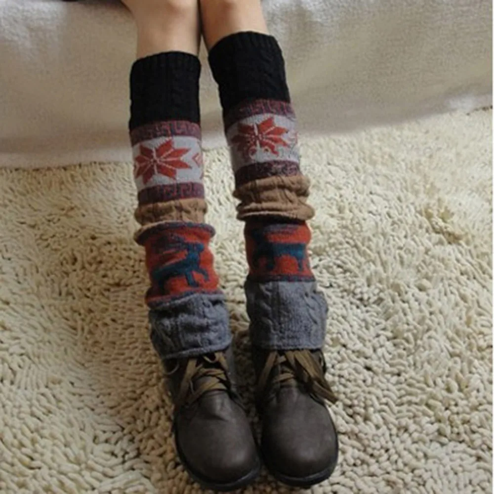 Рождественские Зимние теплые гетры с принтом снежинок оленей вязаные крючком высокие длинные носки повседневные теплые ножки