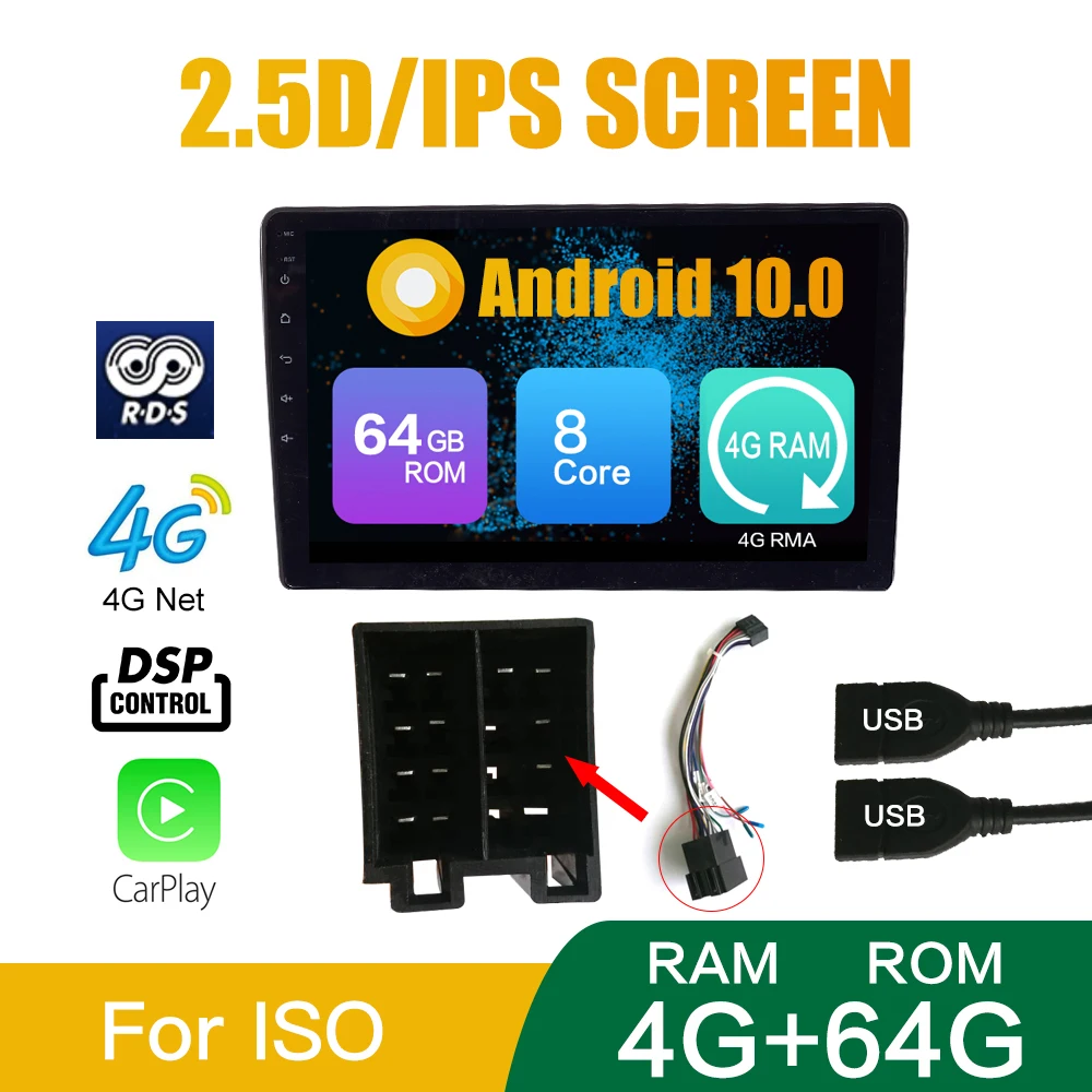 9 дюймов 10 дюймовВосьмиядерныйAndroid 10,0 4 Гб ОЗУ 64 Гб ПЗУ автомобильный Радио мультимедийный видео плеер Авто Стерео GPS карта для универсальной Toyota Nissan Suzuki ISO