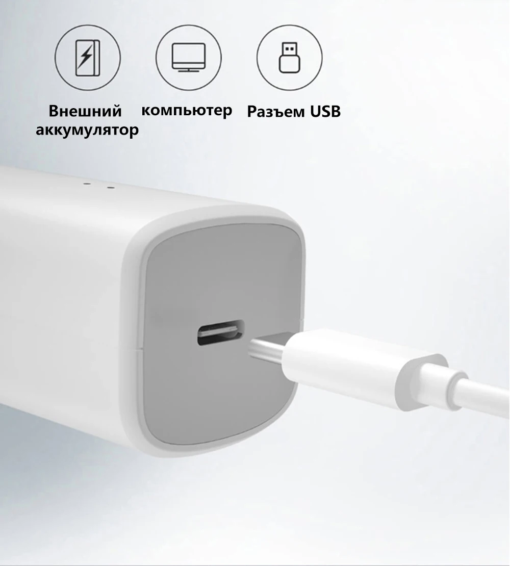 Это пластиковый корпус, он легкий и компактный. В комплект входит зарядный кабель USB type C. Поставляется с чистящей щеткой и маслом для смазывания головки.
