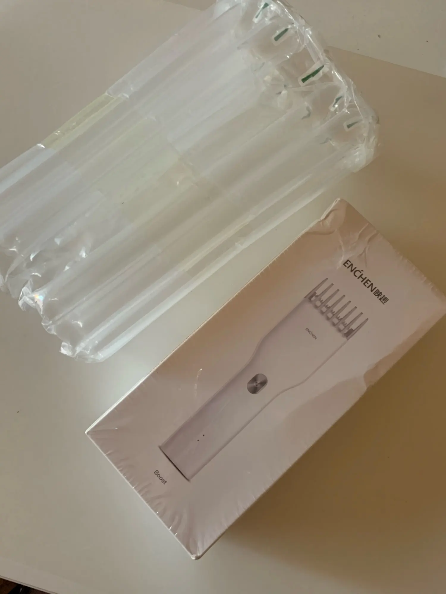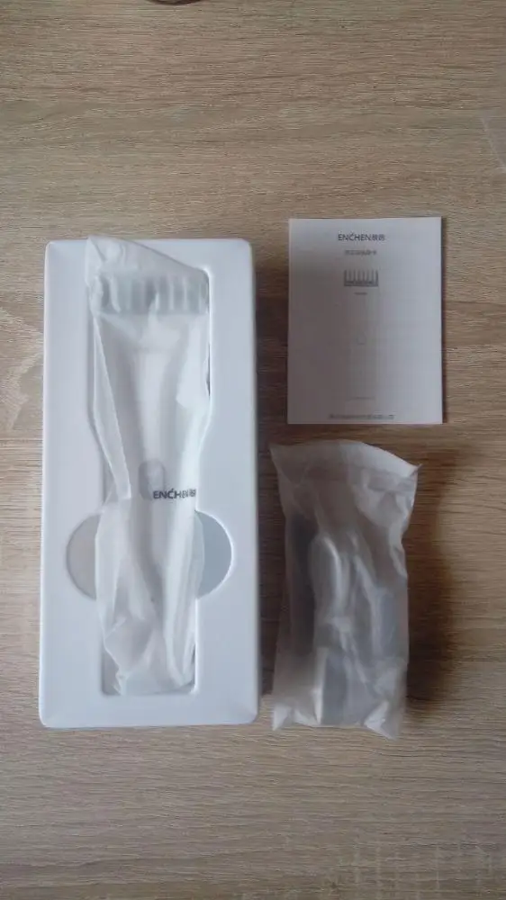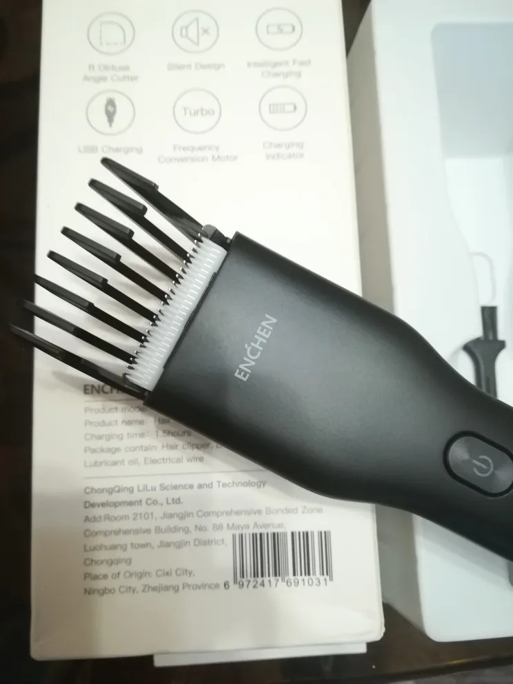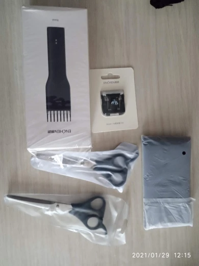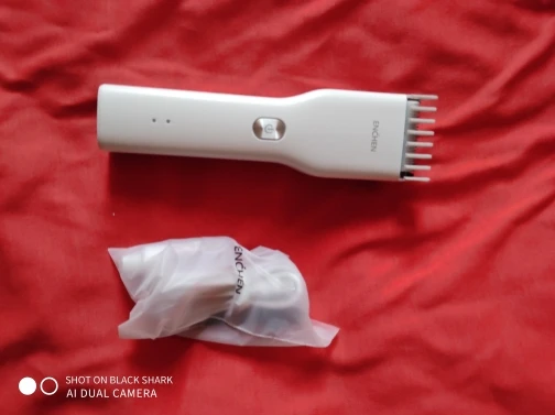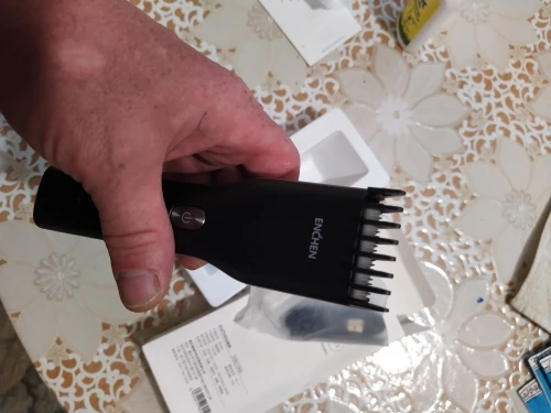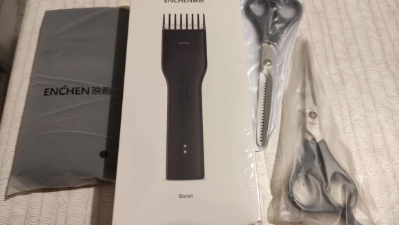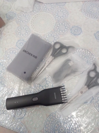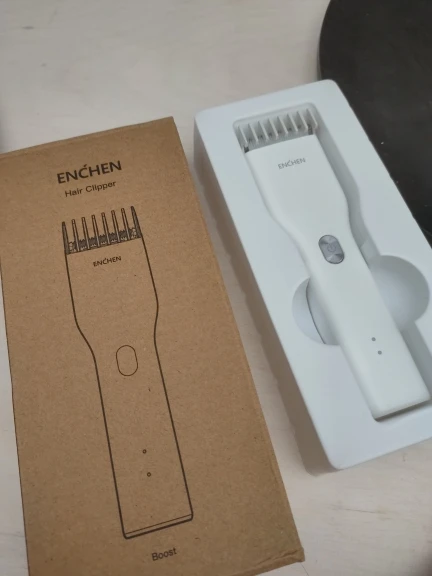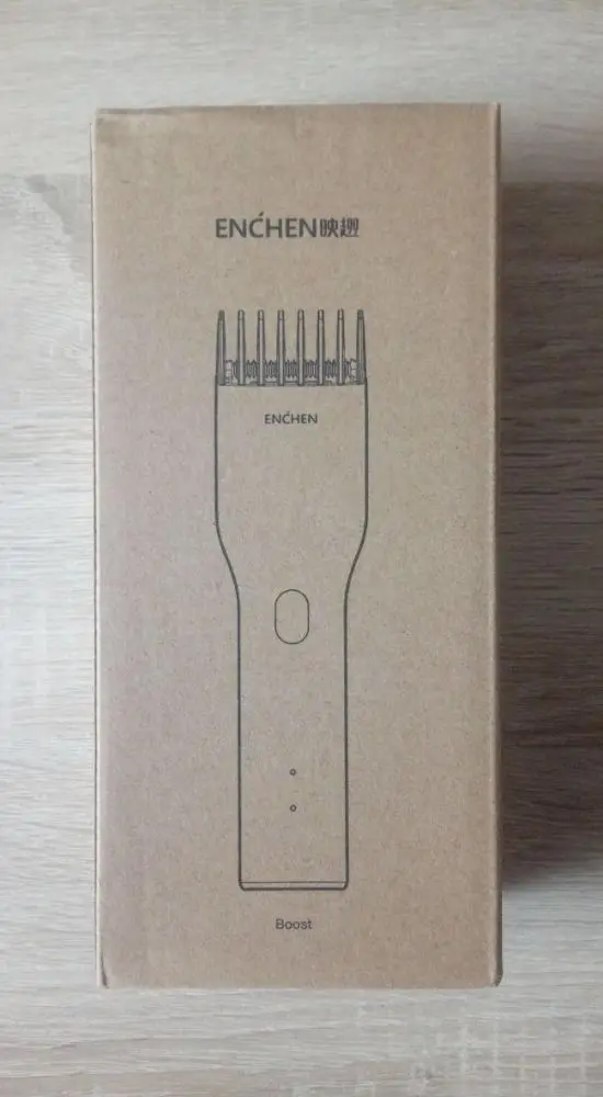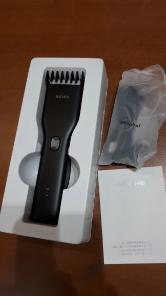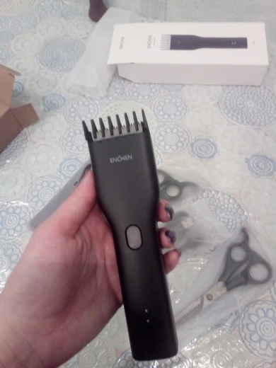 Пришло за 5 дней до Екб. Аккумулятор заряжен на половину. Удобно сидит в руке, лёгкий. Нижний нож керамический. В комплекте нет масла для смазки, хотя в инструкции указано, что должно быть в комплекте. Но раз в описании к товару его нет, это не минус. Более подробно, что за товар, будет понятно через месяца 3, после нескольких стрижек. Пока ощущение от товара сугубо положительное. Кстати накидка и ножницы из набора брендированы Enchen.