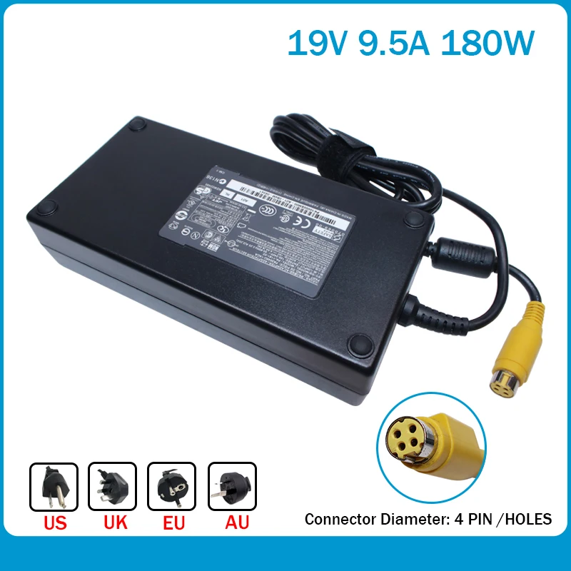 Тип: адаптер питания для ноутбука Вход: 100-240 в 50-60 Гц (используется по всему миру) Выход: 19 V 9.5A 180 w источник питания Диаметр соединителя: 4 штифта/отверстия Выход: 3 зубцами Адаптер кабеля постоянного тока: 1,8 м размерыПосылка включает в себя: 1 х адаптер переменного тока Chicony 19V 9.5A180W