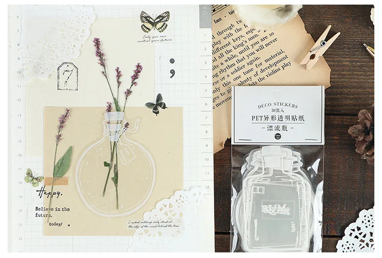 30 шт.компл. творческие прозрачные наклейки для стеклянных бутылок ...
