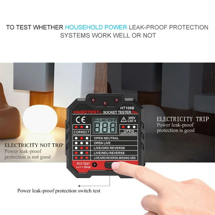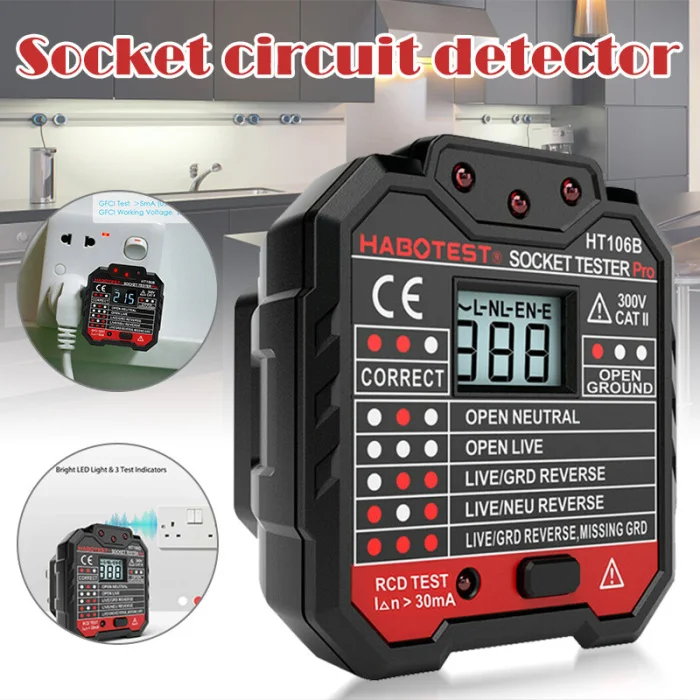 Широкий Применение-Широко используется для тестирования электрического обслуживания, тестирования офисных розеток, тестирования силовых полосок и тестирования настенных розеток в школе, лаборатории, фабрике и других социальных областях. Это экономит вам много времени при тестировании проблем с розетками.