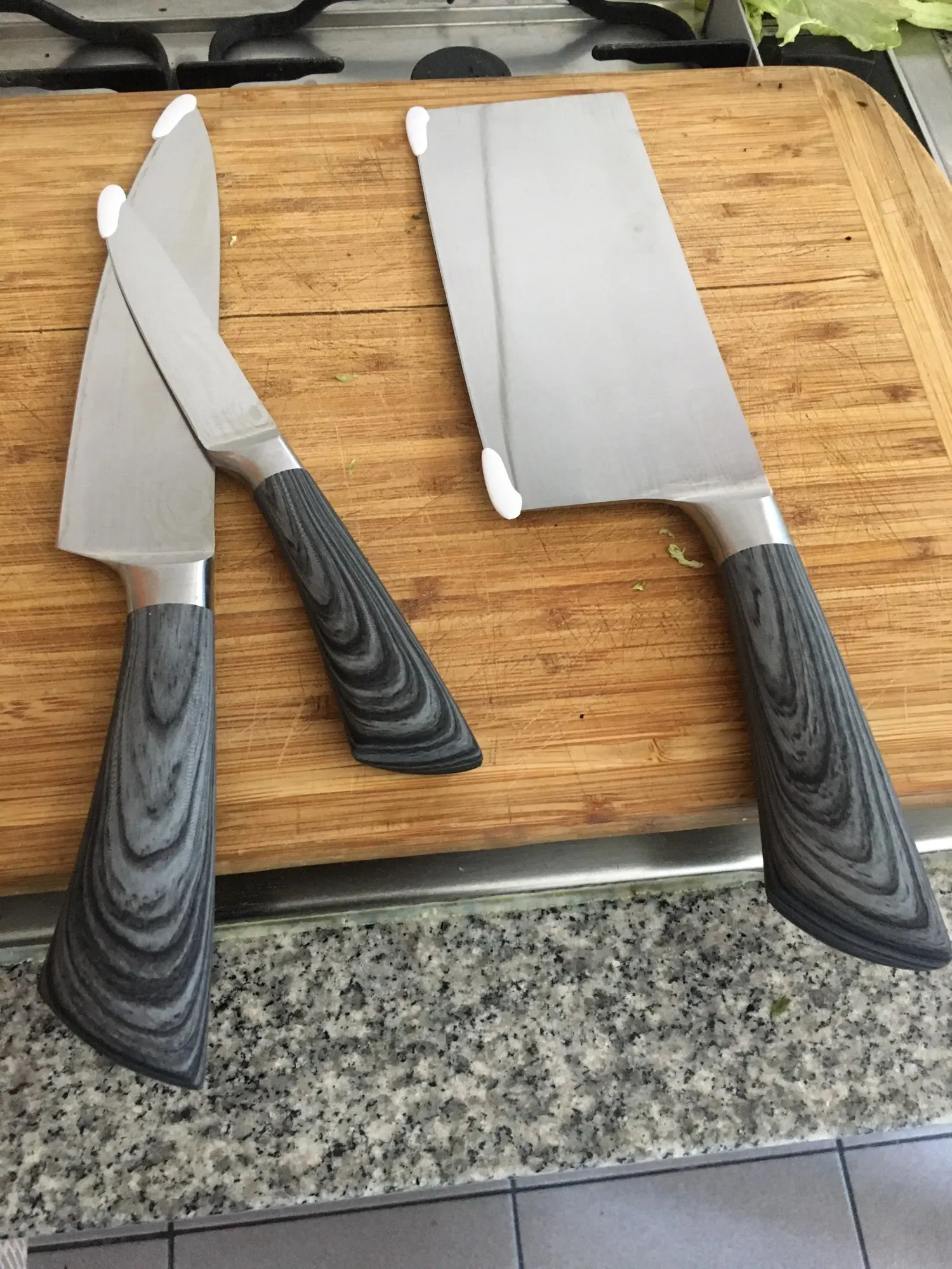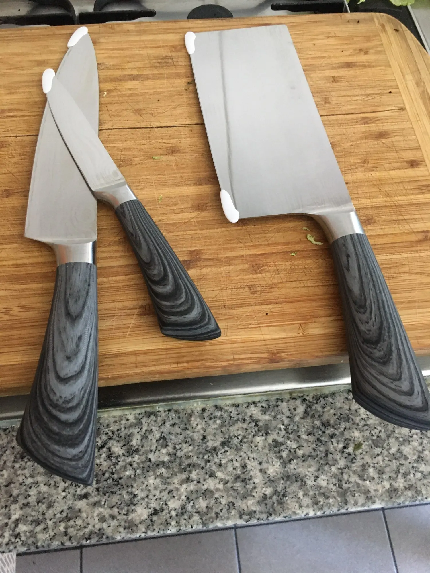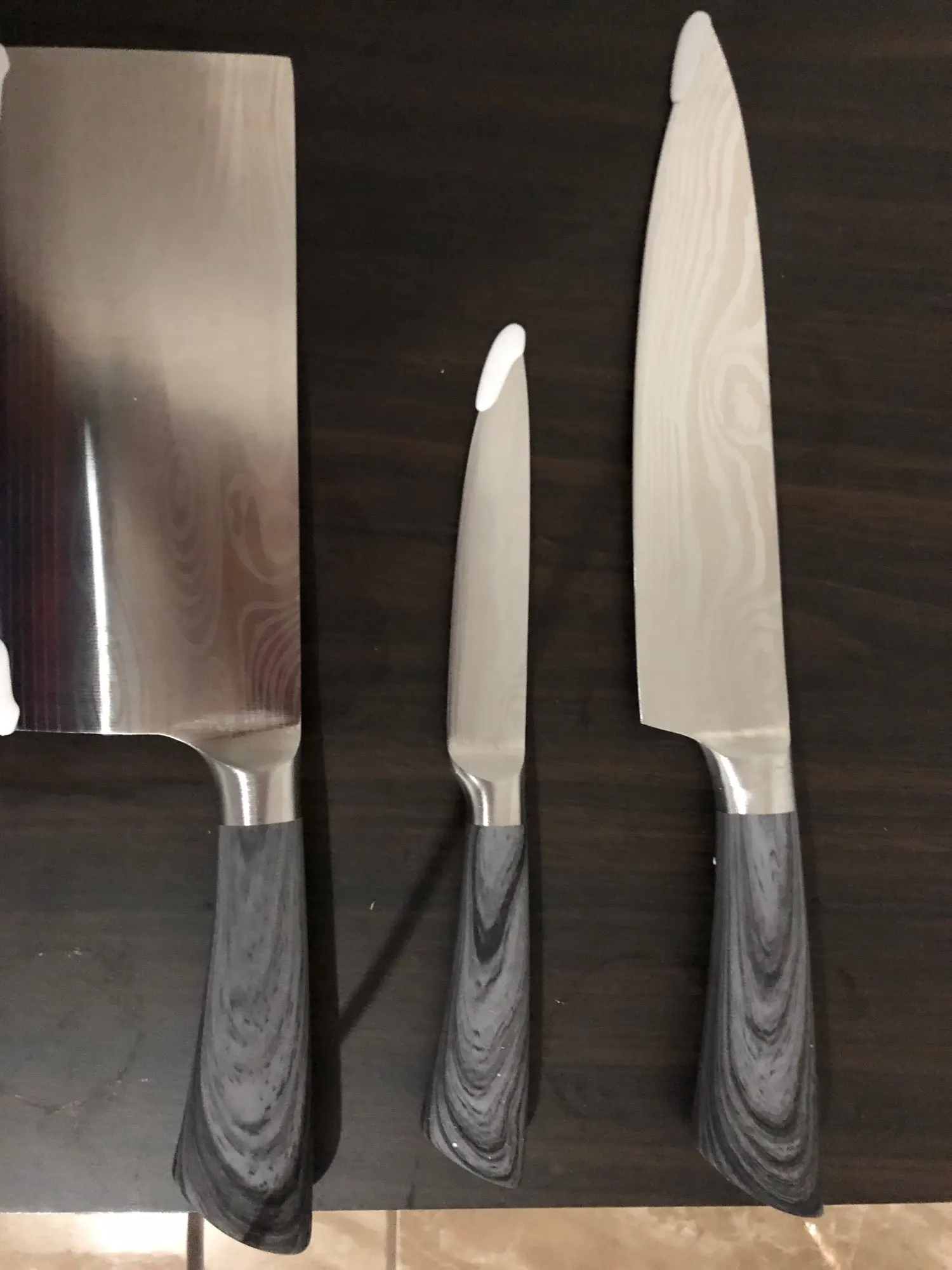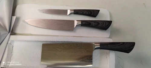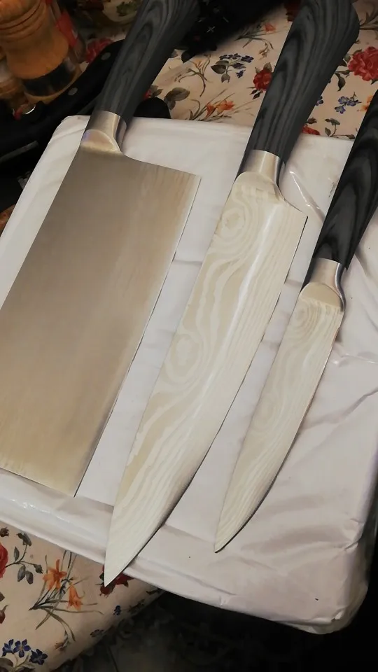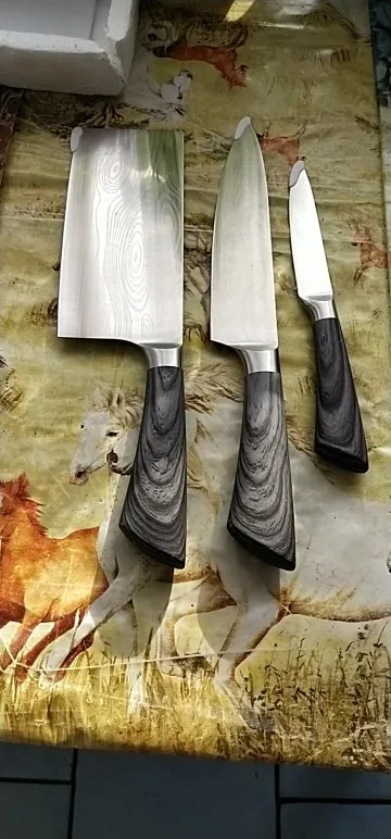 Хорошая Комплектация ножей имитация стальной ручки. По цене, которую они стоят, они отлично выполняют свою функцию. Не забудьте, что с ценой, заплаченной этими тремя лезвиями, не покупайте ни одного хорошего качества.