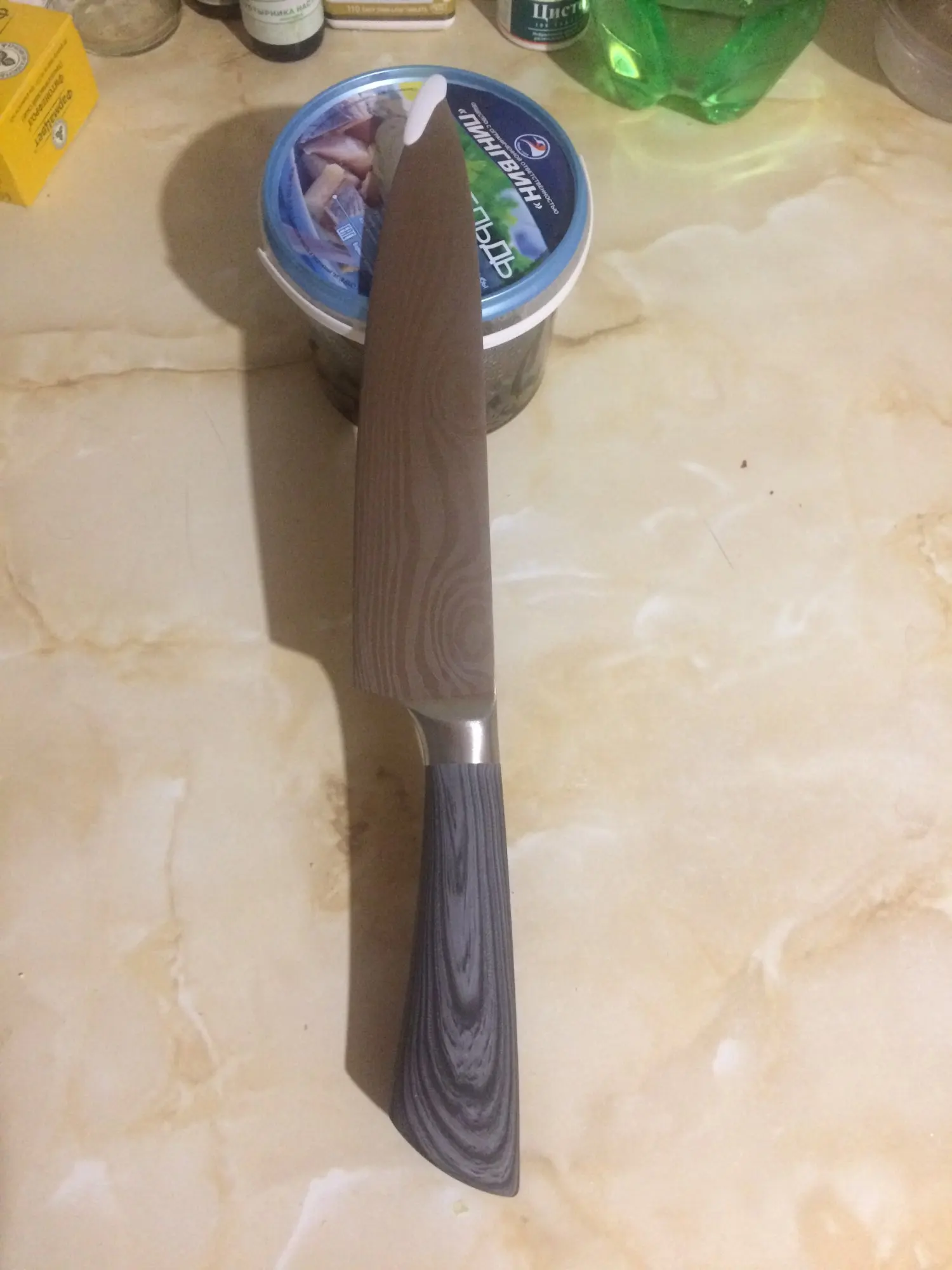 Нож пришел очень быстро, нож мне понравился. Очень легкий нож, посмотрите, как он прилипает.