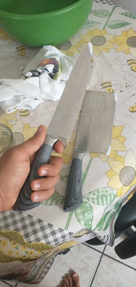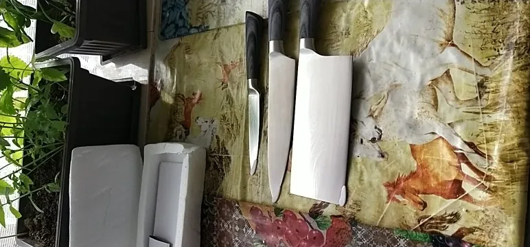 Здравствуйте продавец! Очень давольная отличные ножи, острые удобные держать в руках, металл ножей качественный и очень острые лезвия Легко нарезать овощи, фруктов и так далее. Спасибо продавцу хороших выходных здоровья, успехов.