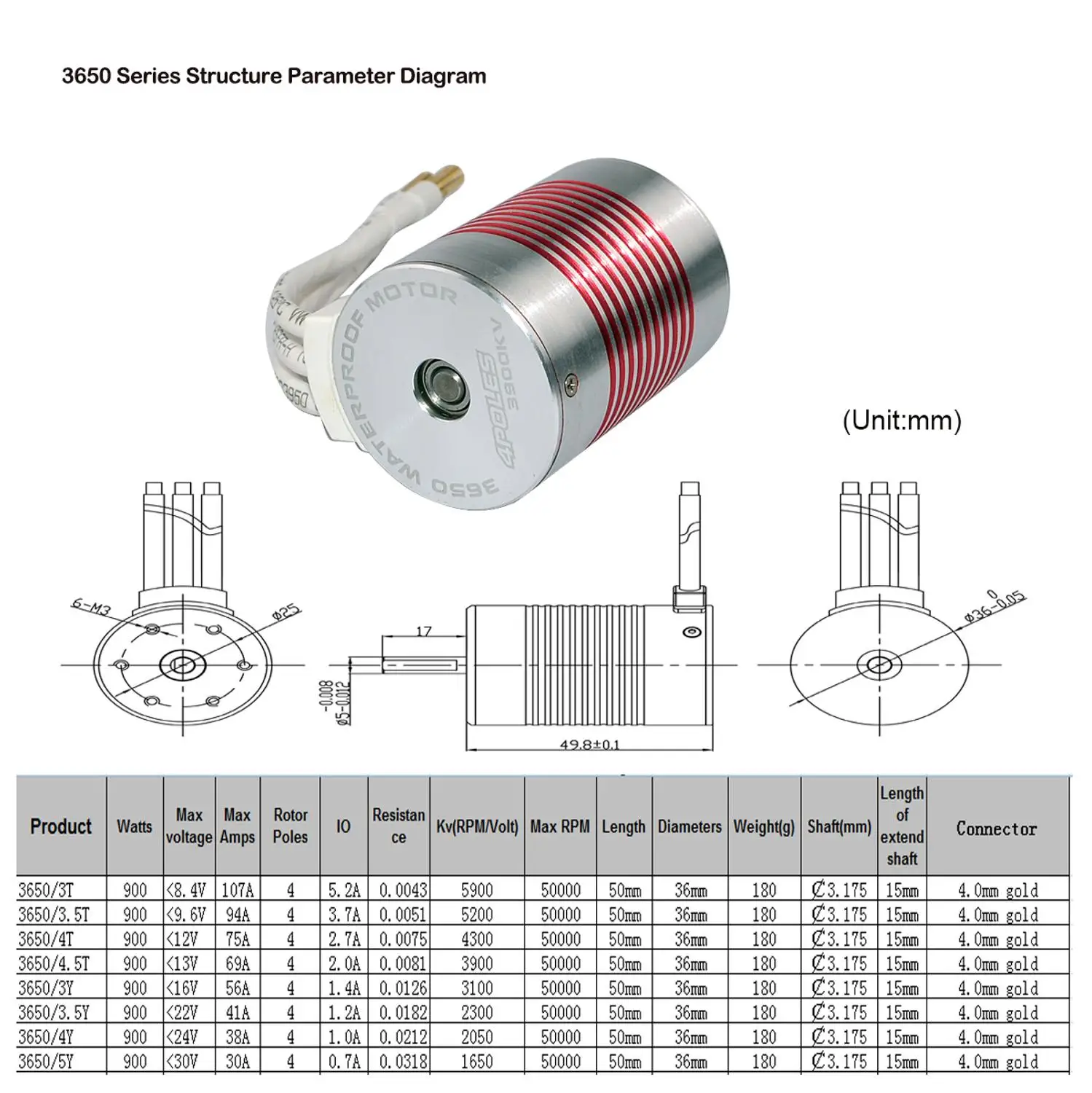 Платиновая Водонепроницаемая серия 3650 1650KV 2050KV 2300KV 3100KV 3900KV 4300KV 5200KV 5900KV бесщеточный двигатель для машин 1:10 RC