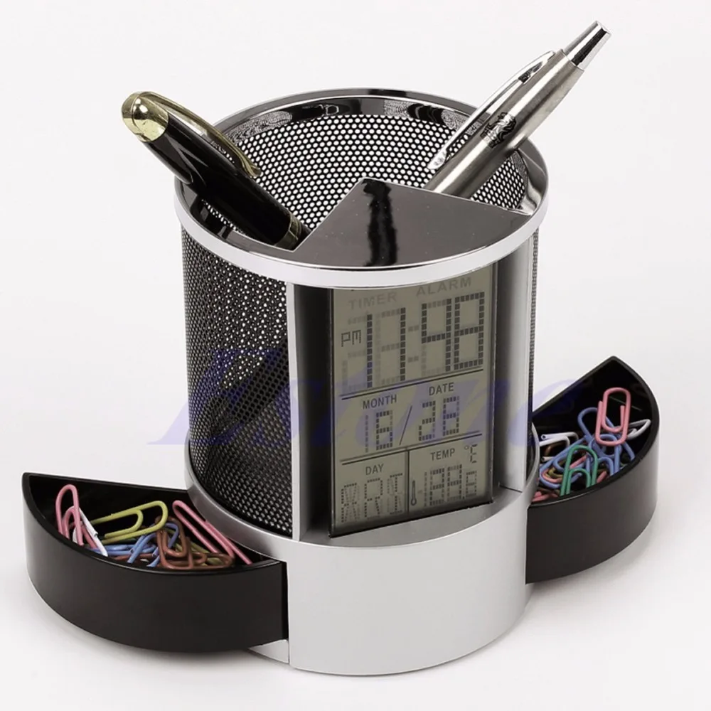 Сетчатый держатель для карандашей с цифровым ЖК-дисплеем, для офисного стола, будильник с функцией Time временный календарь