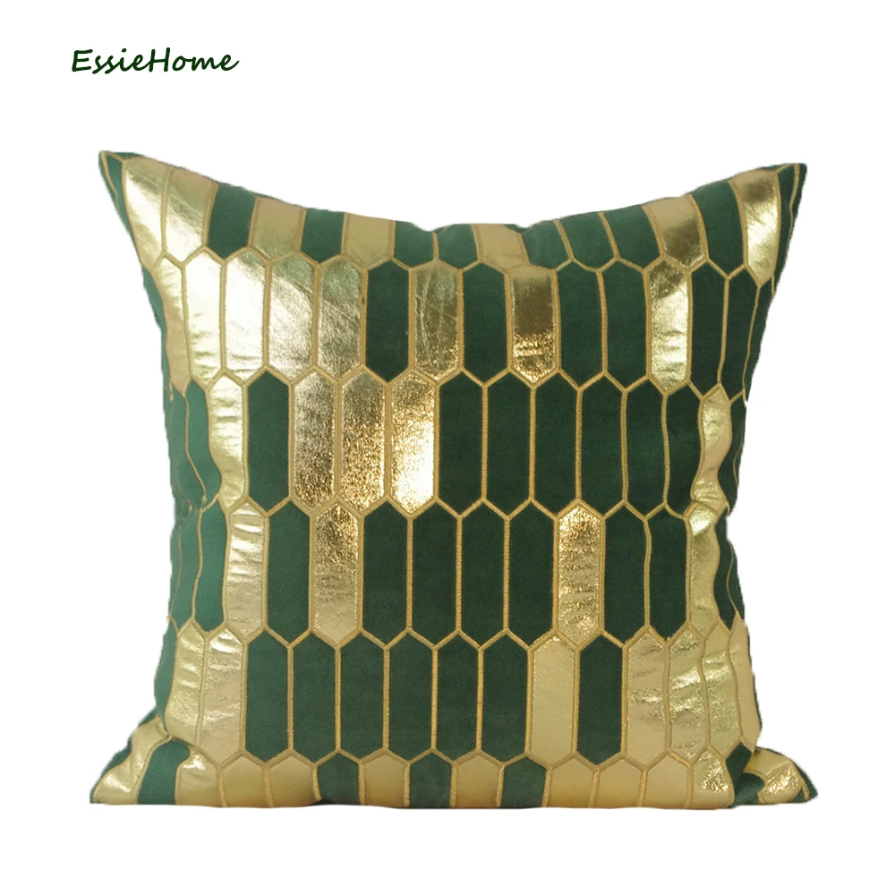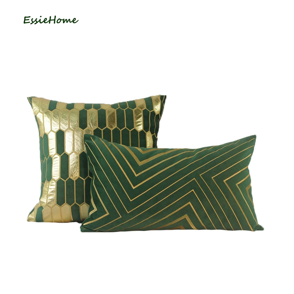 Женский бархатный чехол для дивана ESSIE HOME, наволочка для подушки с золотым и зеленым лесом, украшение для дома