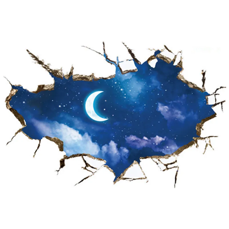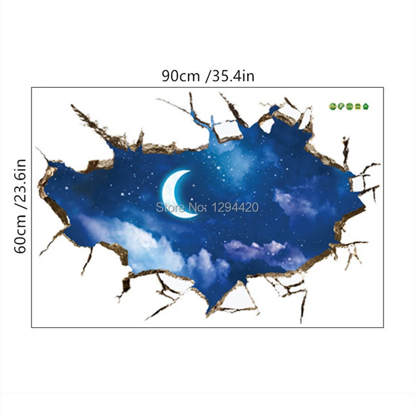 Звездная ночь 3d сломанной виниловые настенные наклейки полумесяц мигающий звездного неба пейзаж росписи украшения дома нетканые обои, 90*60 см