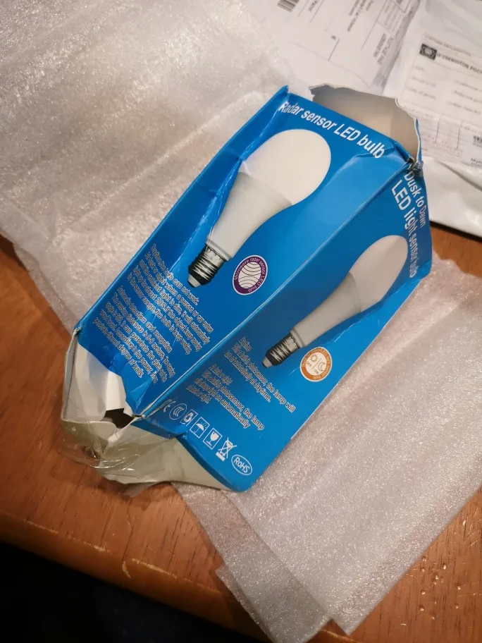 Быстрая доставка. Хороший датчик также работает вокруг углов при отражении радара. При ярком освещении лампа не включается по желанию. 5 Вт точно подходит для садового освещения.