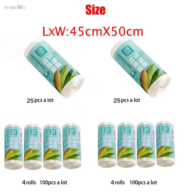 Кукурузные биоразлагаемые мешки для мусора, классифицированные одноразовые мешки для уборки унитаза, для кухонного мусора, более толстые пластиковые мешки, ломаются