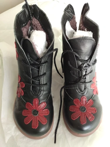 Ботинки женские из натуральной кожи, винтажные, с цветочным рисунком, ручная работа, ботинки с мехом, Осень-зима 2021