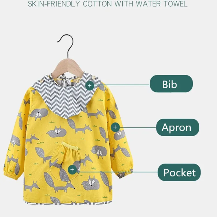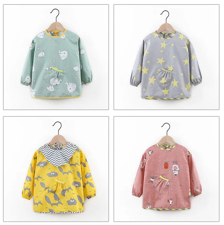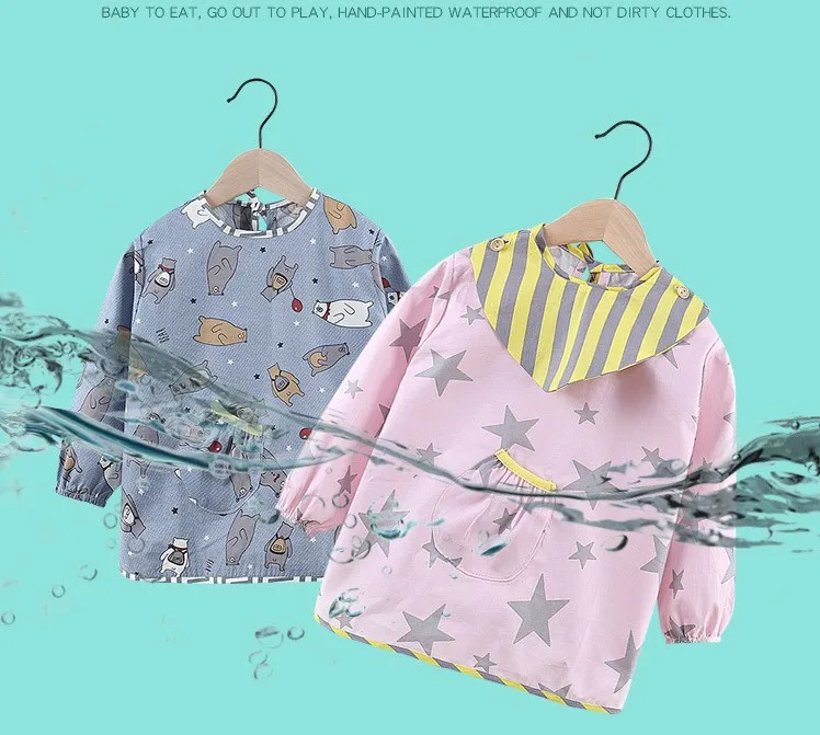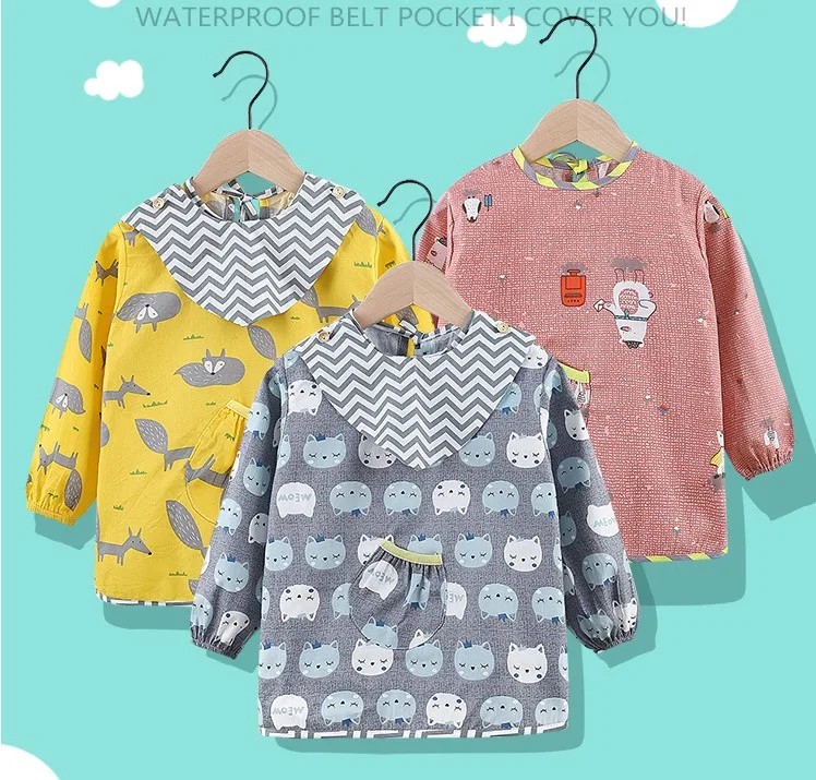 Нагрудник детский, хлопковый, водонепроницаемый, с длинным рукавом