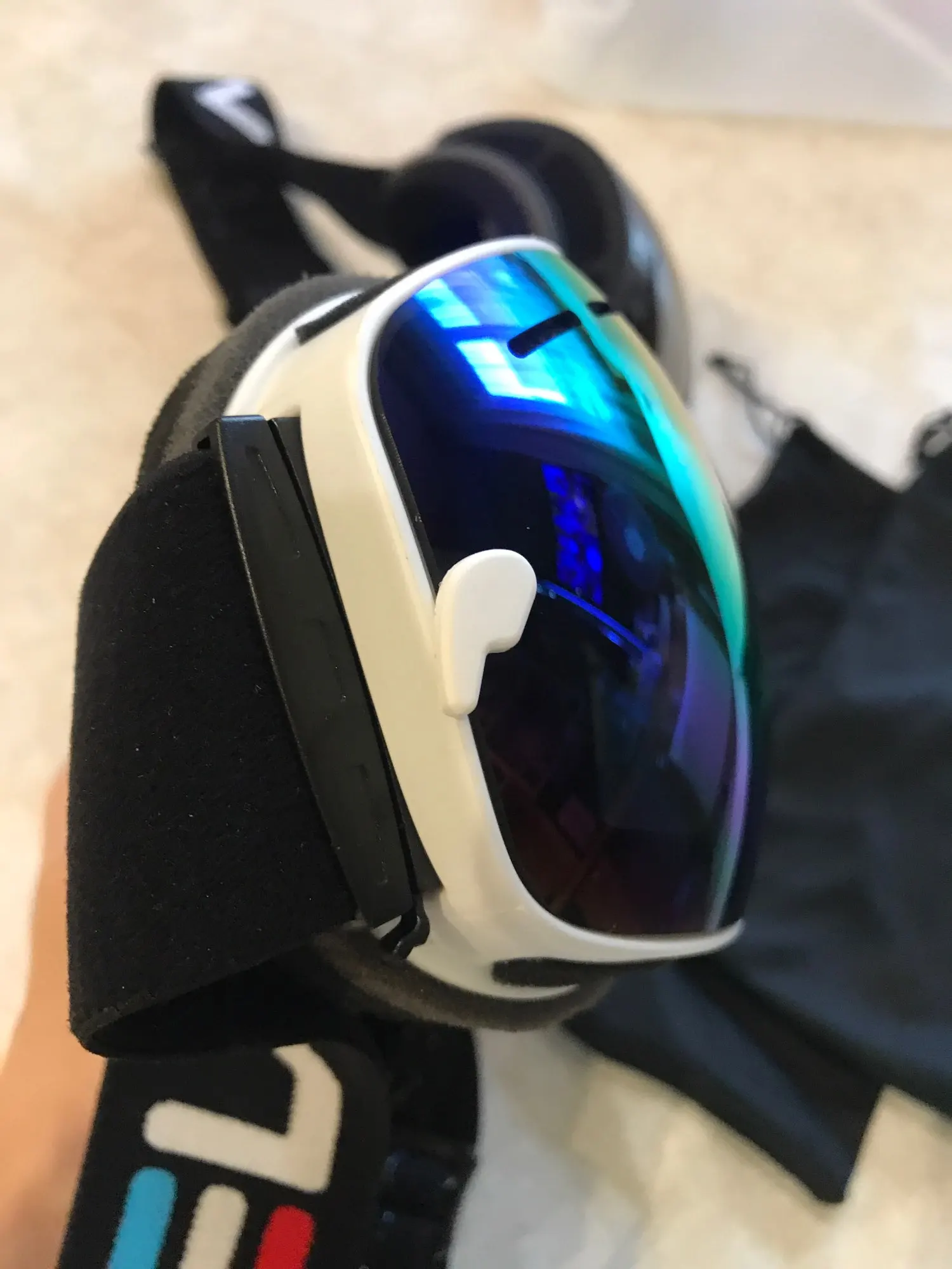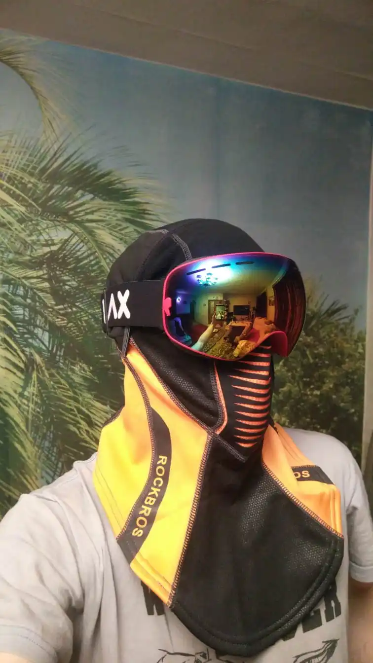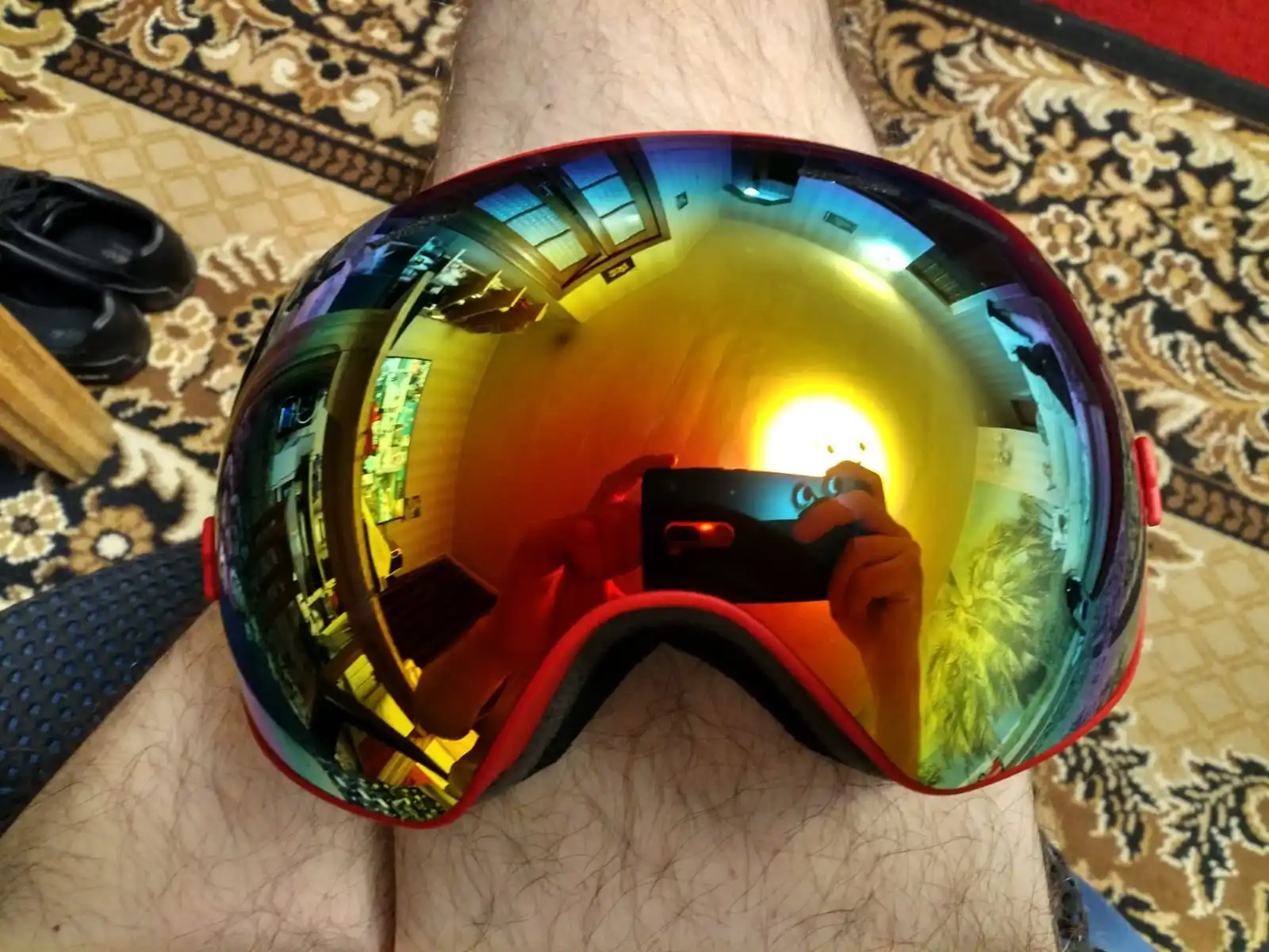 Посылку доставили быстро, упаковка отличная, несколько транспортировочных пакетов и пленка на внутреннем стекле. Есть чехол, но он немного маловат, не класть в него а натягивать). Уплотнитель паралон, похоже пропитан чем-то. Ремень просиликонен, широкий регулировать легко в перчатках. Внутренняя линза не потеет. Внешнее зеркало сидит довольно плотно, по периметру защелки 9 штук и 2 по бокам поворотных зажима. Сменить зеркало быстро не получиться, да и не стоит этого делать часто на данной модели, конструкция долго не проживет. Если нужно менять стекло, лучше брать на магнитах. Цветофильтр на стекле разноцветный, сверху фиолет, к центру синий, вниз зеленый, поляризации нет. Расстояние от стекла до глаз большое, поэтому маска смотрится немного громоздко, но зато лучше вентилируется и под нее можно одеть очки.