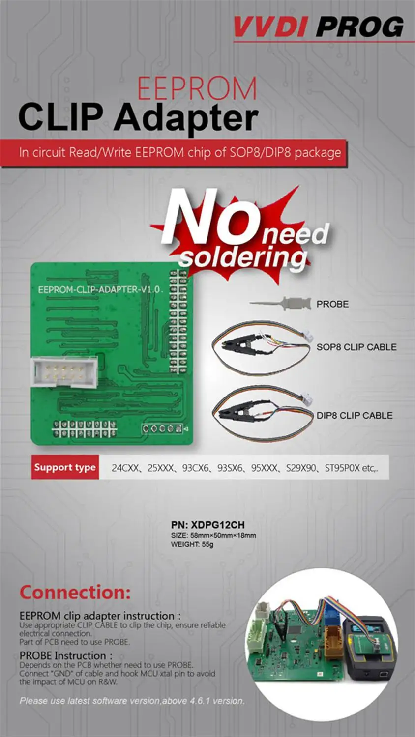 Зажим-адаптер Xhorse EEPROM XDPG12CH для чтения и записи схемы SOP8DIP8, для программатора VVDI PROG