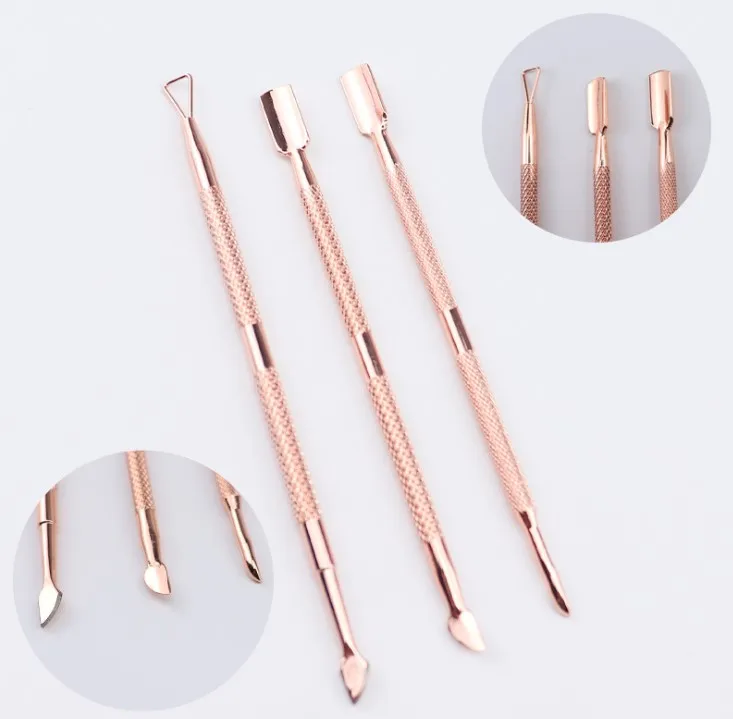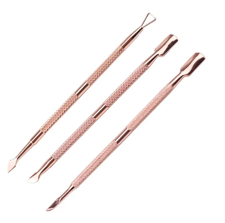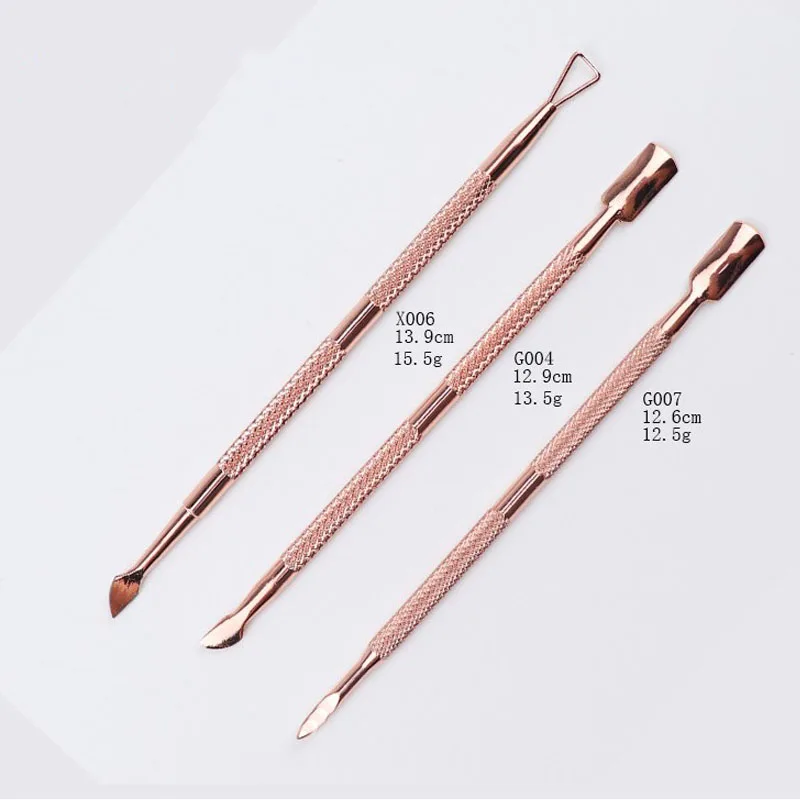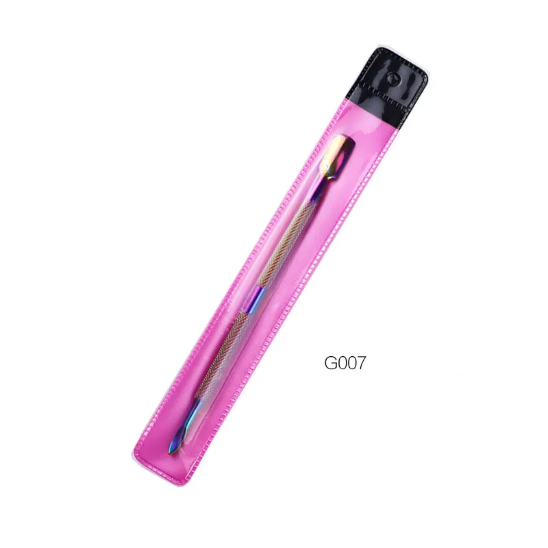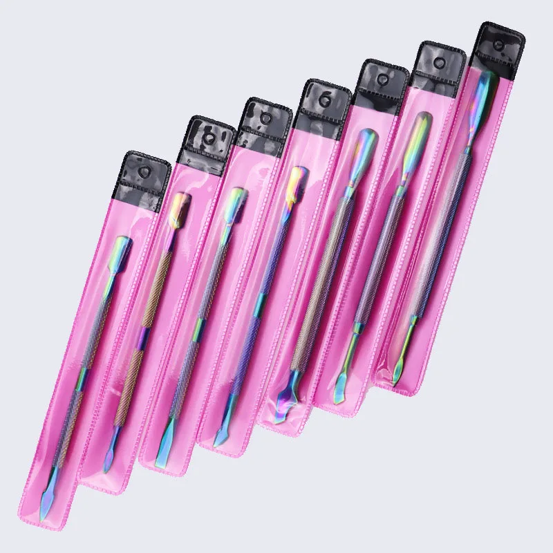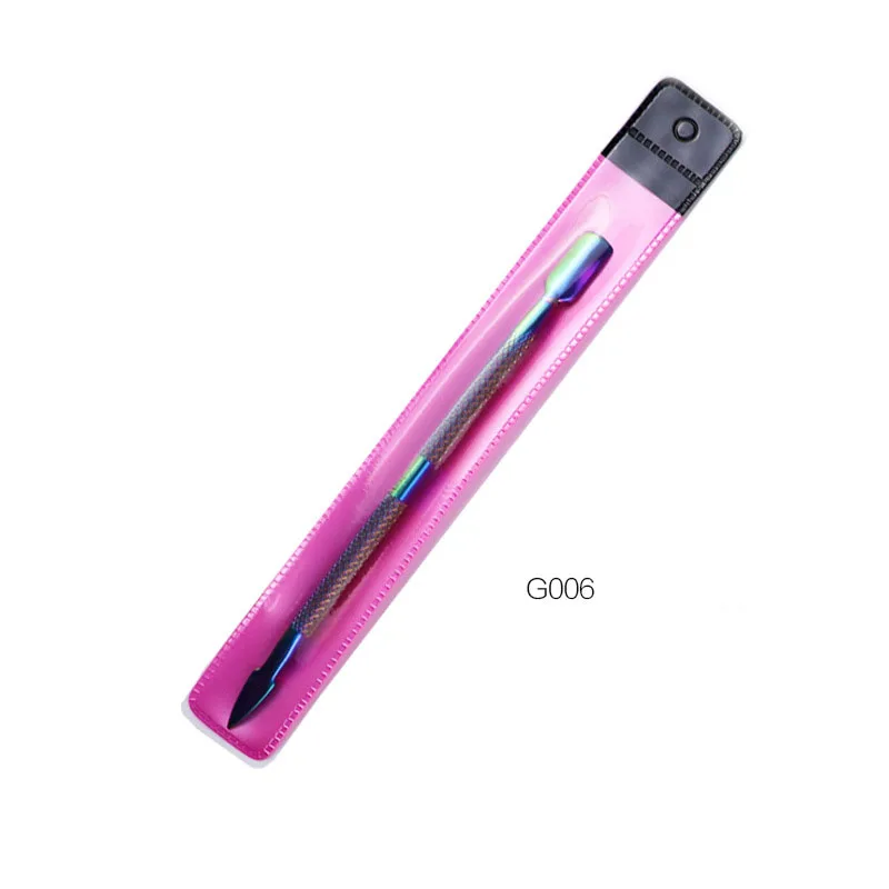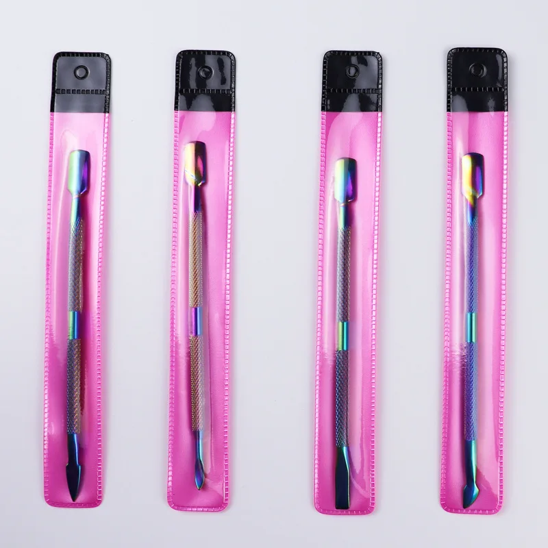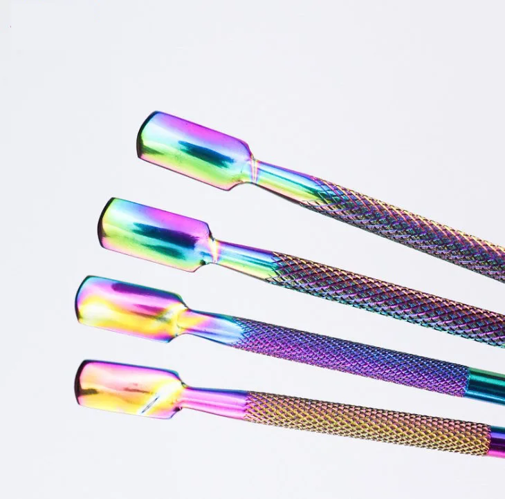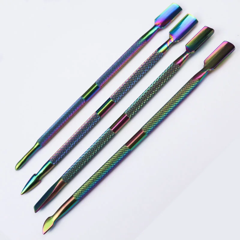 Цветной титановый стальный Толкатель для омертвевшей кожи Модный дизайн двойная головка из нержавеющей стали Толкатель для кутикулы Маникюрный Инструмент для дизайна ногтей