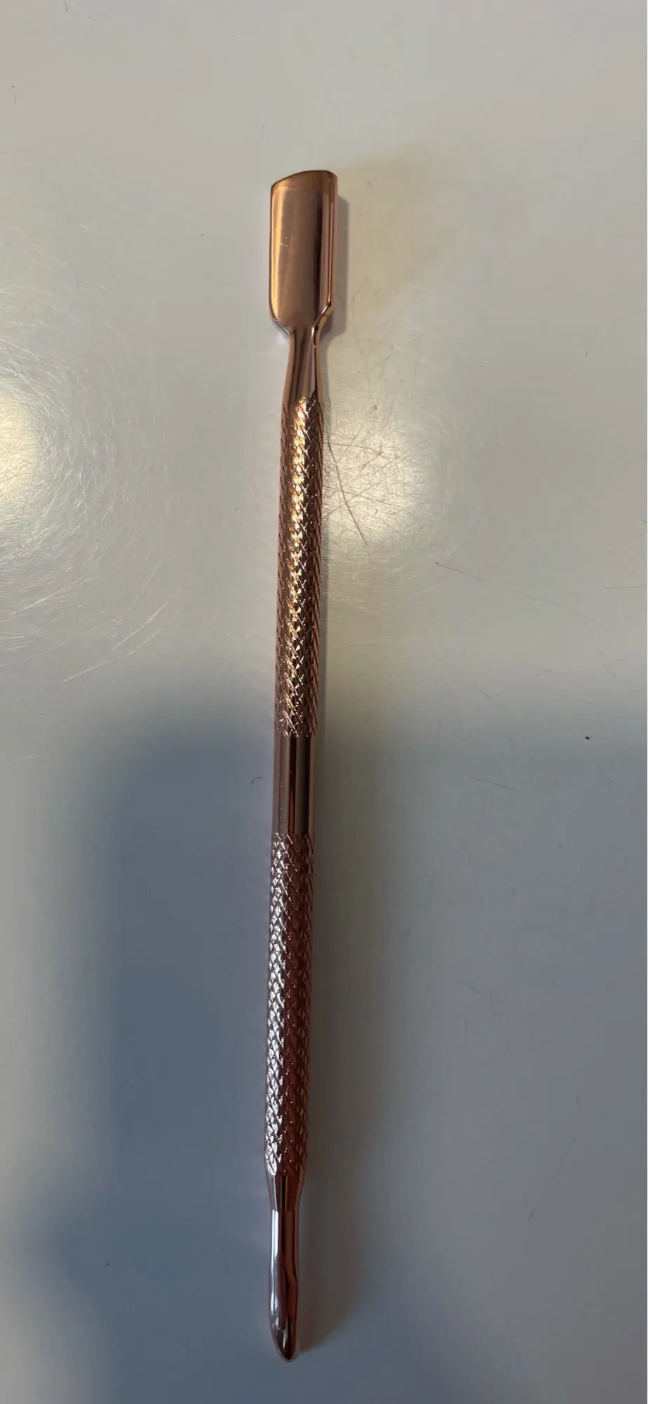 Дизайн и цвет толкателя красивые, но краска на верхней части, которая предназначена для толкания кутикулы очищены, подвергая жестким металлам, И, как правило, невозможно использовать это на ногтях, не повреждая их. Доставка была быстрой, хотя