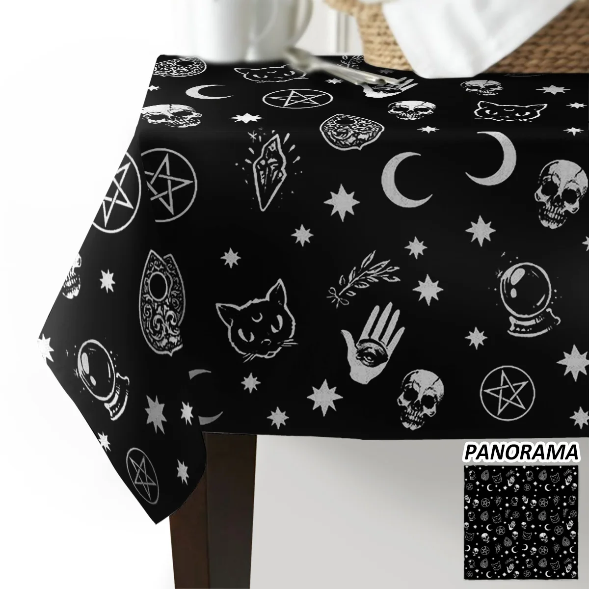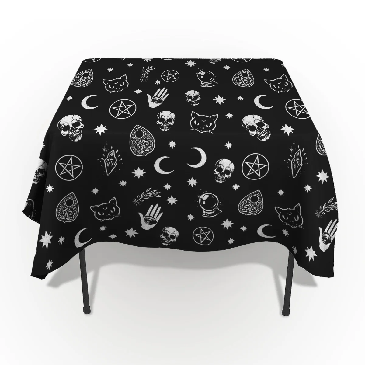 Скатерть для стола с изображением черепа ведьмы, Луны, черного цвета на Хэллоуин