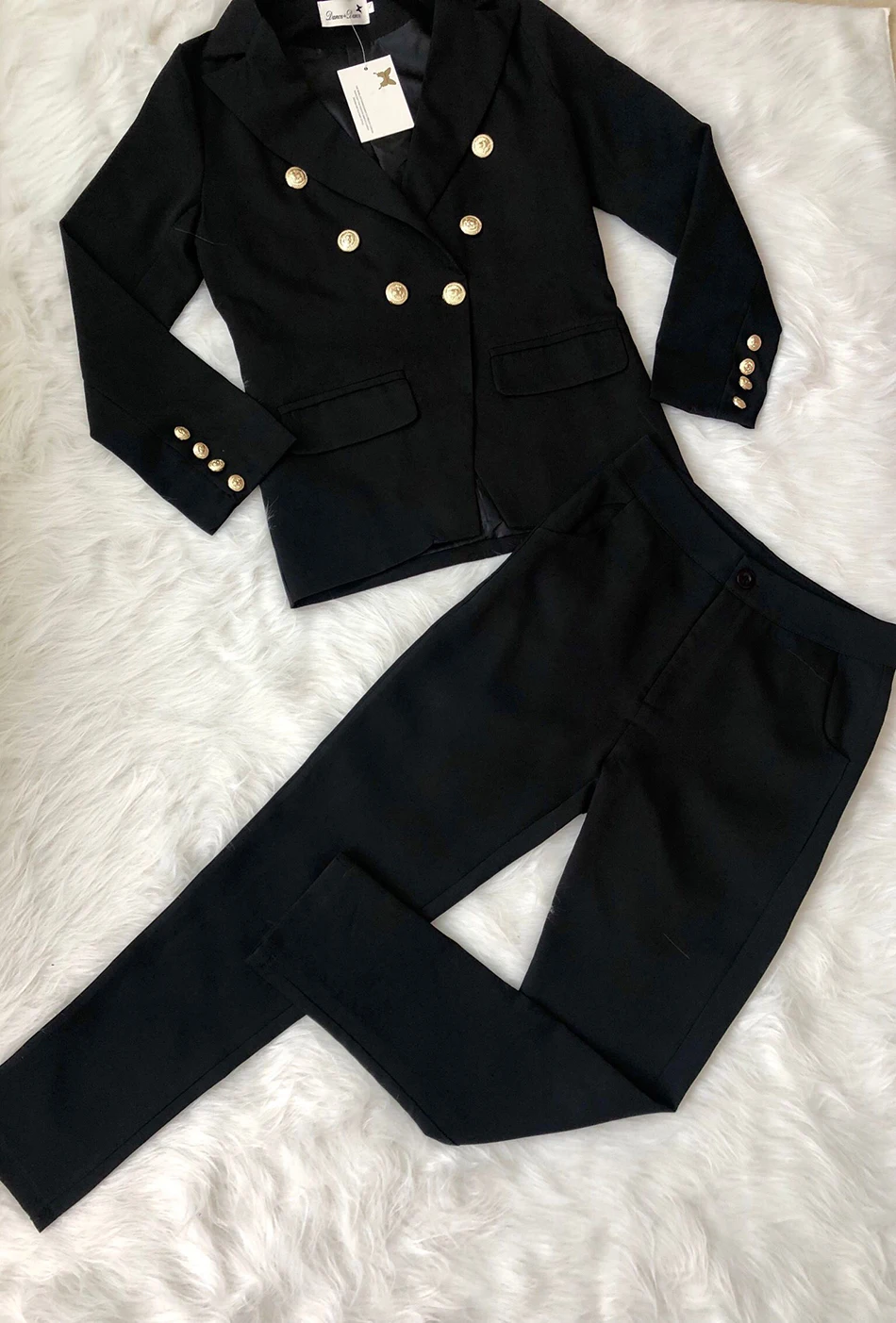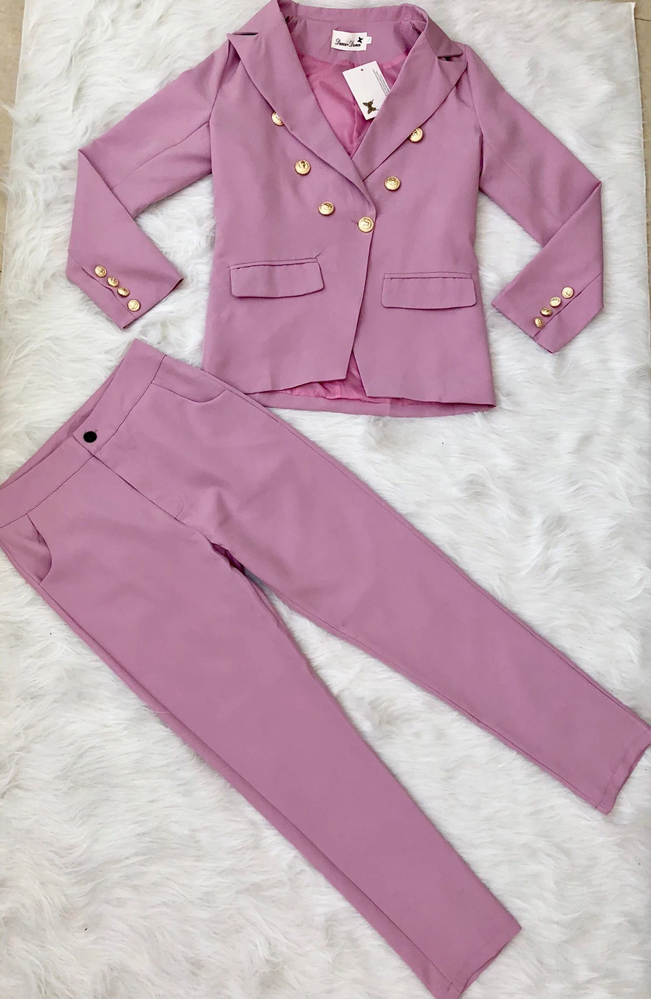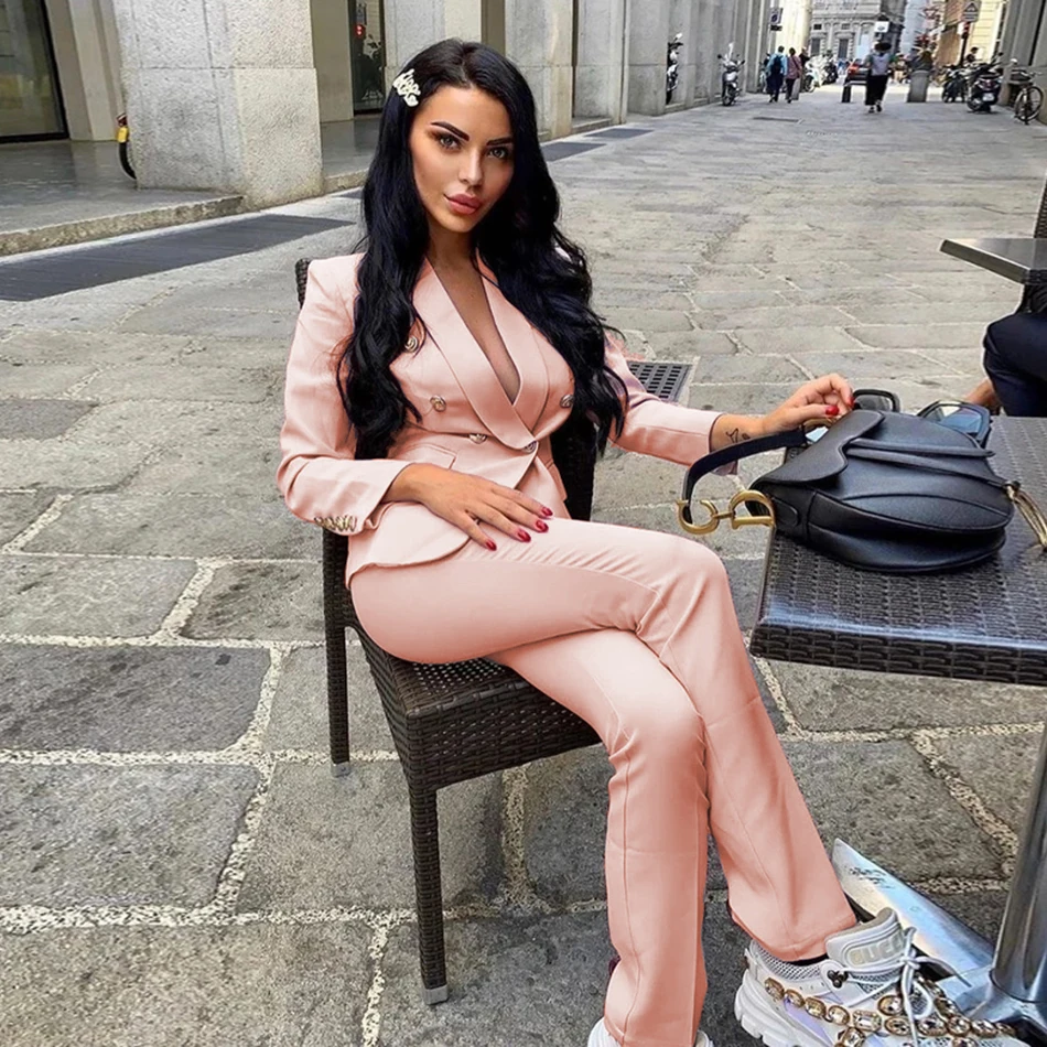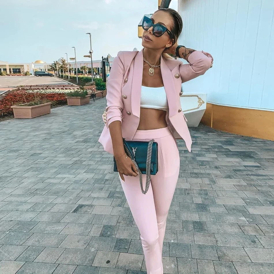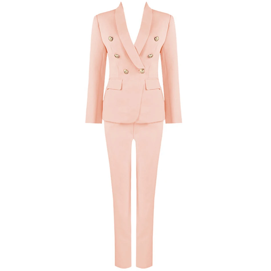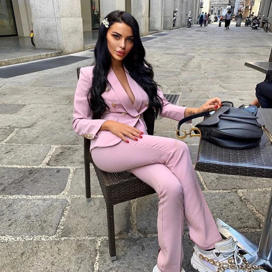 Костюм женский осенне-зимний из жакета и штанов, с розовыми пуговицами, костюм с v-образным вырезом, офисный, 2020