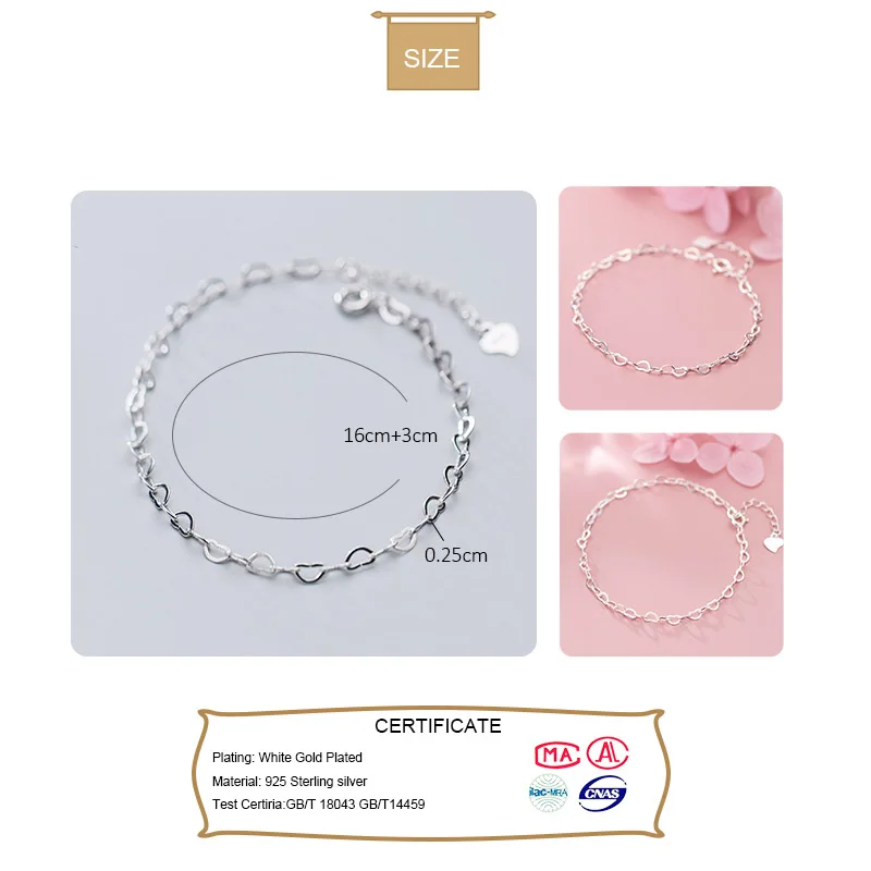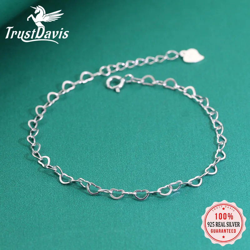 Серебряное ювелирное изделие trustdavid 925 пробы, сердце цепочка браслет для женщин и девушек, подарок на день рождения DS2379