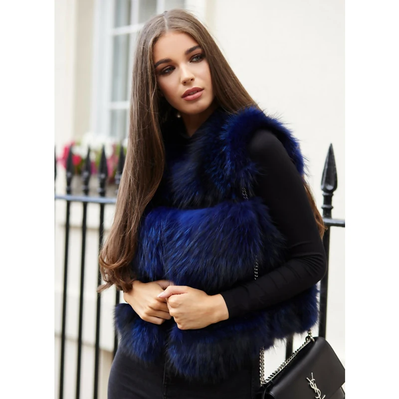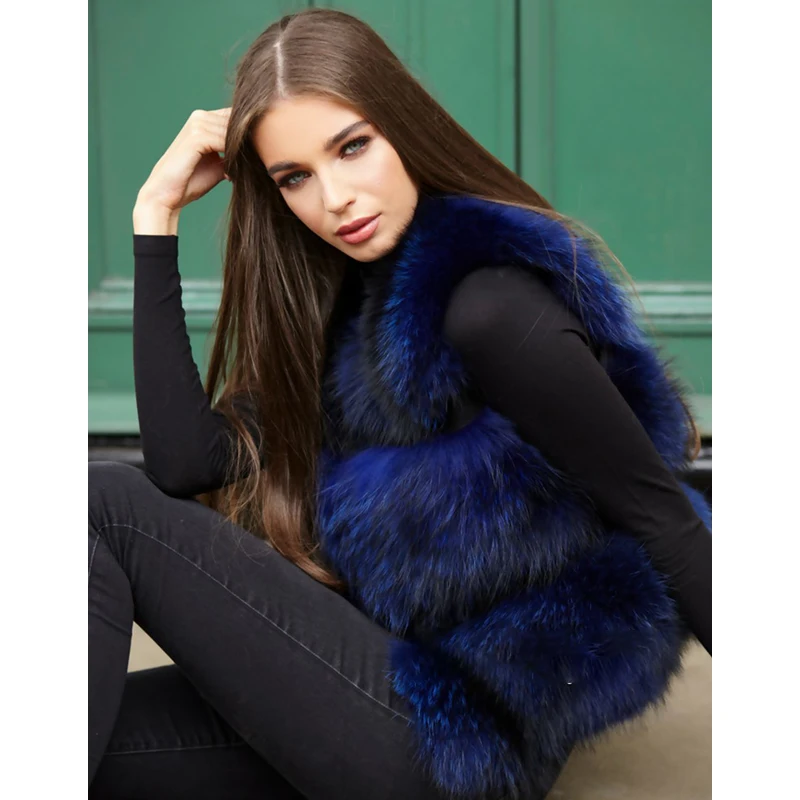 Зимняя модная теплая куртка из натурального Лисьего меха с V-образн...