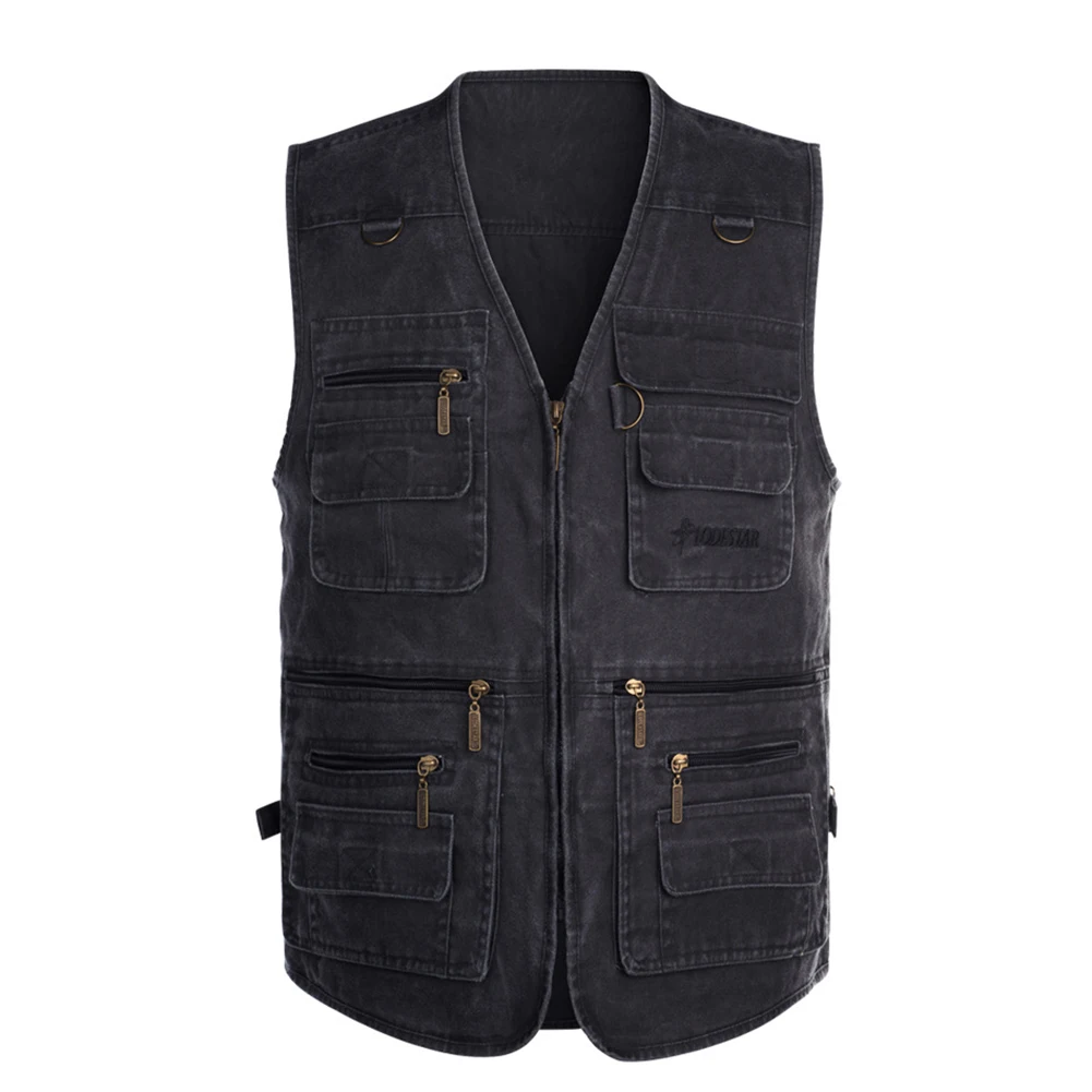 Жилет Мужской Хлопковый без рукавов, размера плюс жилет с карманами для активного отдыха, стрельбы, рыбалки, походов, одежда