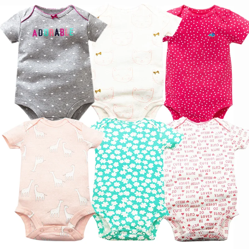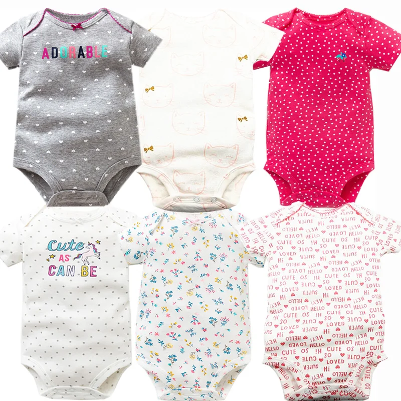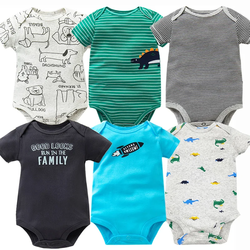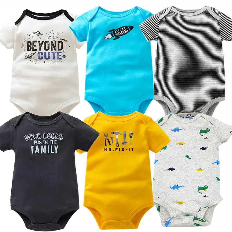 Комбинезон детский из 100% хлопка, 6 шт.лот, с коротким рукавом, для детей 6-24 месяцев