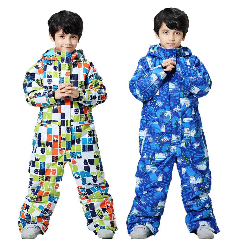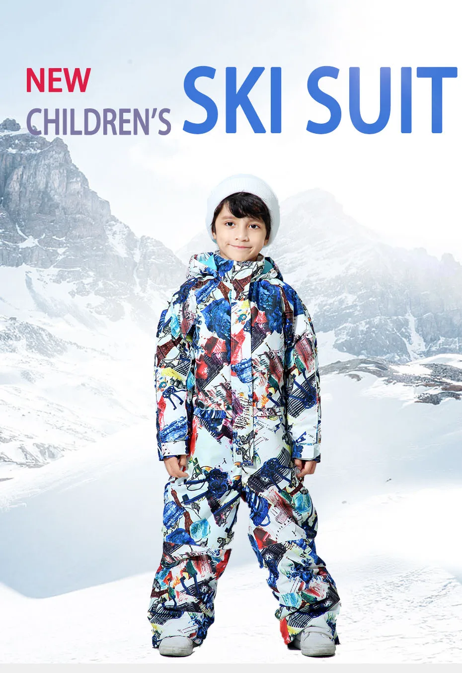 Детский лыжный костюм для мальчиков, зимние детские ветрозащитные водонепроницаемые теплые куртки и штаны для катания на лыжах и сноуборде-30 температур