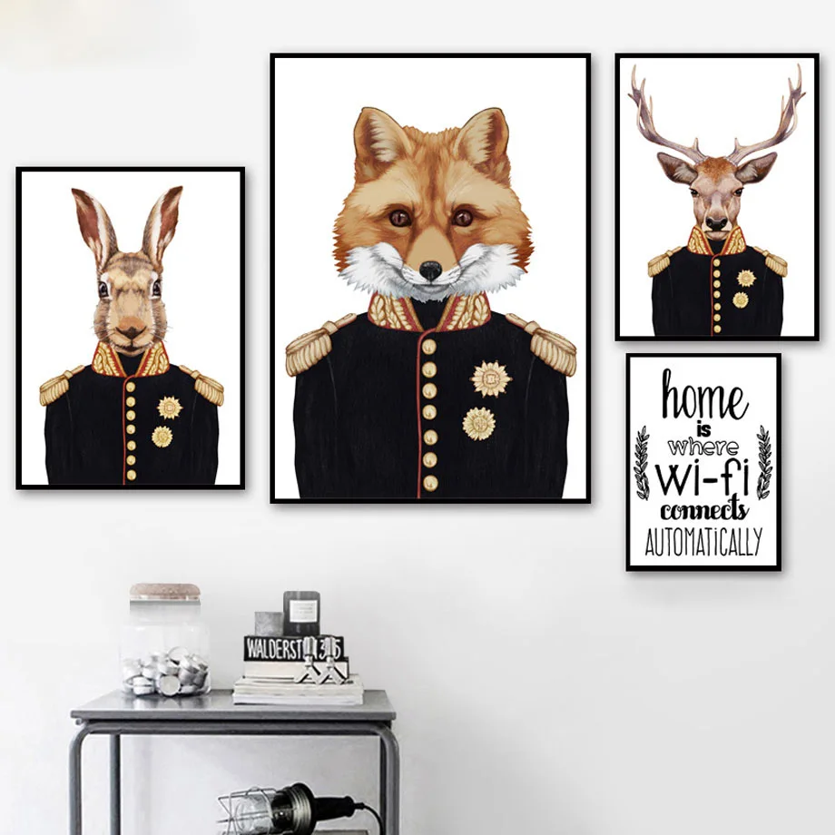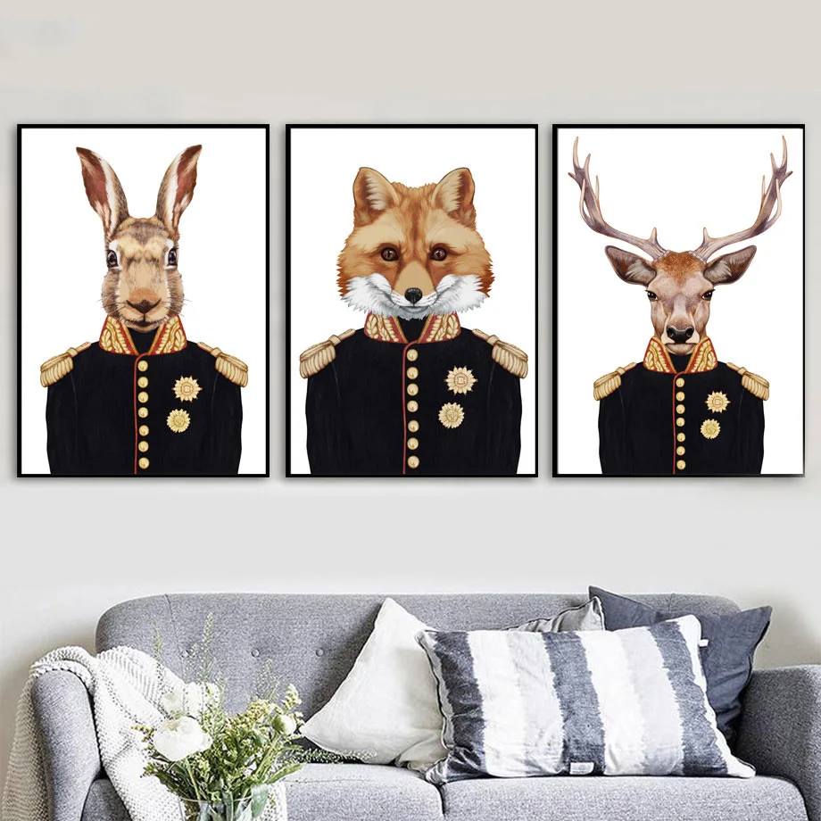 Аннотация олень с лисьим и кроличьим генерал Wall Art Холст Картина Nordic Плакаты и принты настенные картины для Декор в гостиную