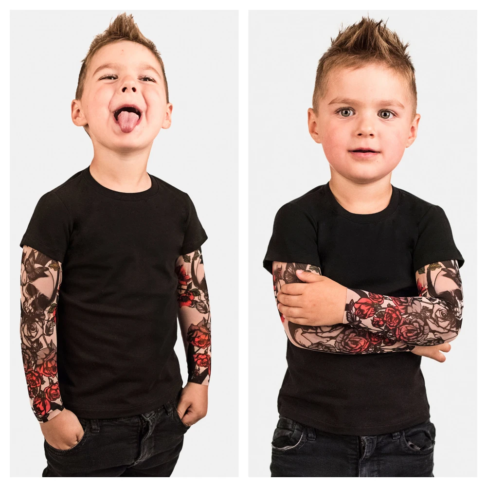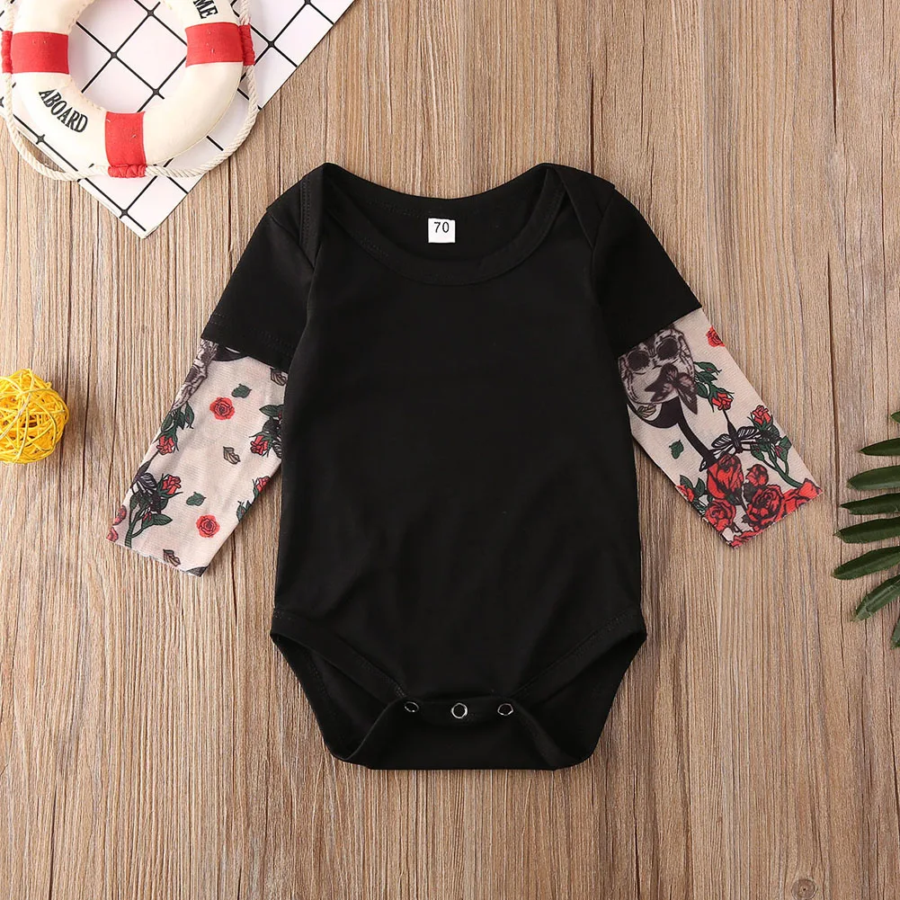 Одежда с Детская Татуировка рукавами для малышей комплект одежды для новорожденных мальчиков, рубашка, бодифутболки