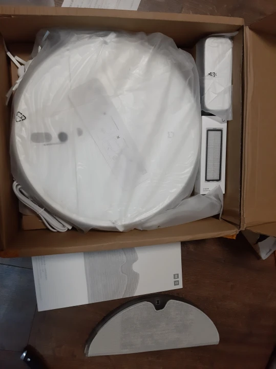 Посылку отправили только через 4 дня после оплаты. Транспортной компанией шло ещё 4 дня до г.Иваново. Коробка была целая. В комплект положили доп. шнур с евровилкой за что отдельное спасибо! Приложение mi home из плеймаркета сразу определило пылесос и предложило обновиться. При загрузке обновления несколько раз писало ошибку. В итоге немного подождал, вышел из обновления, зашёл и всё обновилось. Пока прогнал один раз в стандартном режиме. Не сказать, что тихий, но не напрягает. На 27м2 потратил 23% заряда. По чистым полам в итоге нашел где то пыль. Влажную пока не пробовал. Пылесос сделан очень качественно, нет ощущения дешёвого пластика. Рекомендую!