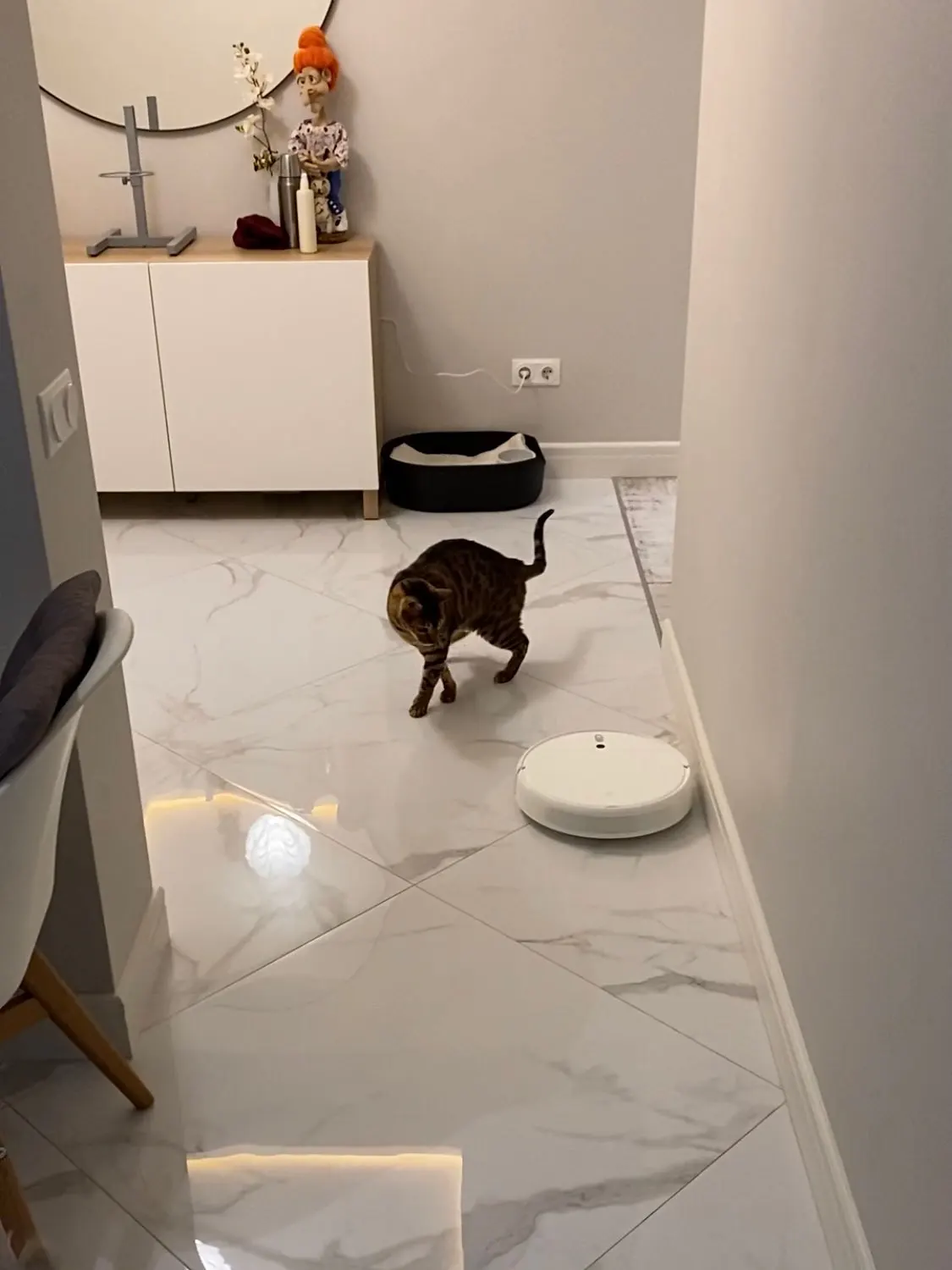 Отлично! Раньше его предки, пылесосы, были гораздо тупее ;). А этот прямо удивил своей расторопностью. Влажная уборка, это прямо громко сказано, так "еле влажный след". Экономит воду, как будто ему нужно протереть 300 метров квартиру. На 70 метровую квартиру, расходует всего треть своего бака и это на максимуме. Может отверстия подачи воды ему "раз ковырять"? Ну и для кота враг теперь, так как ездит возле его лотка-туалета. Но в боях с пылесосом, теряет только когти :)))