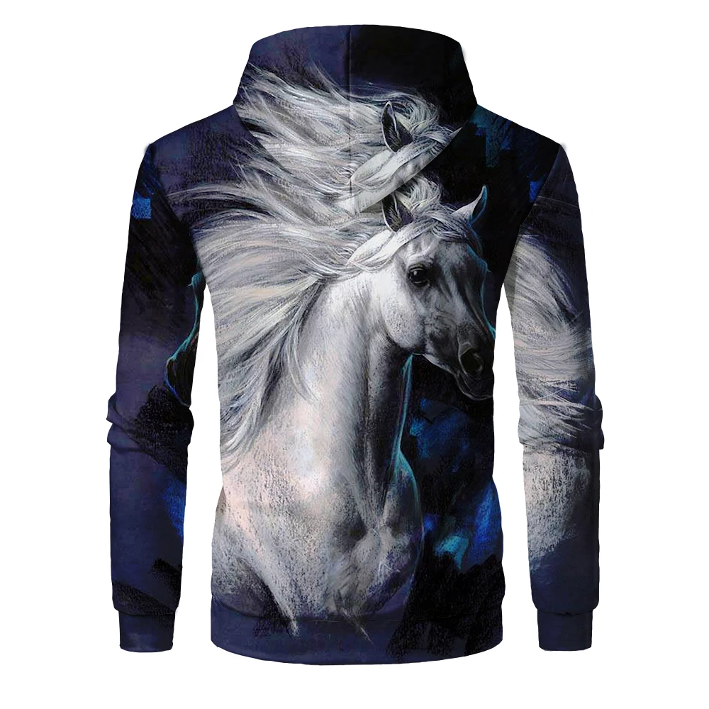 Новинка 2019, Модный свитшот для мужчин и женщин, толстовки с 3d рисунком белой лошади и животных, верхняя одежда унисекс, весенние толстовки с капюшоном