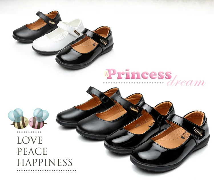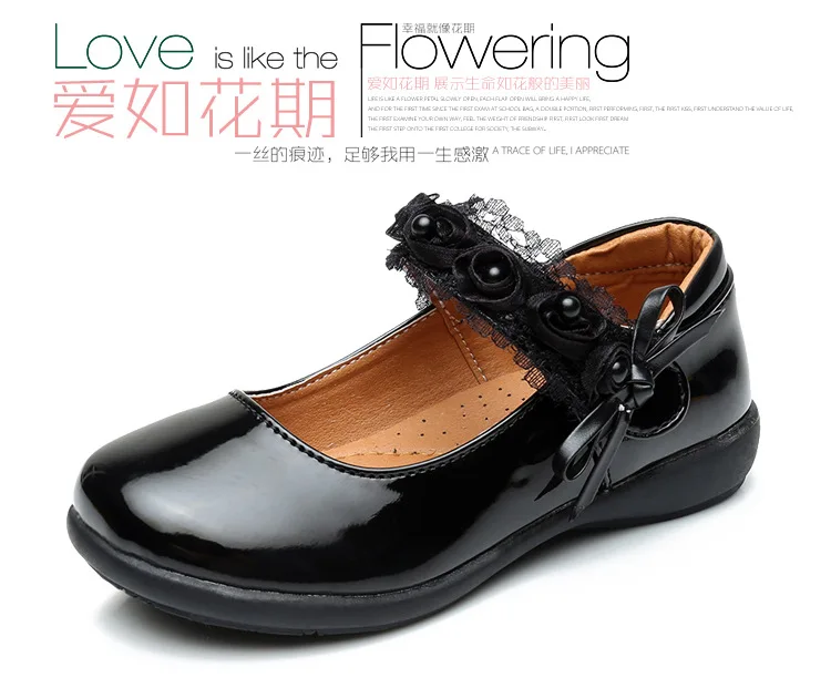 Новые Детские Туфли Мэри Джейн для девочек из искусственной кожи школьная обувь черные модельные туфли на плоской подошве с цветами свадебные белые детские туфли