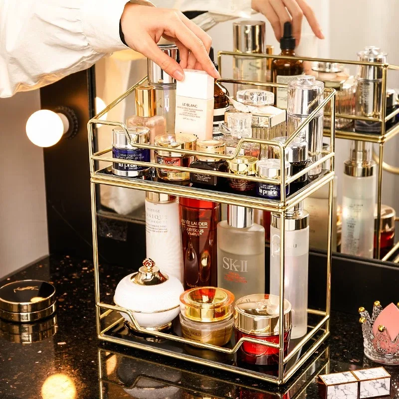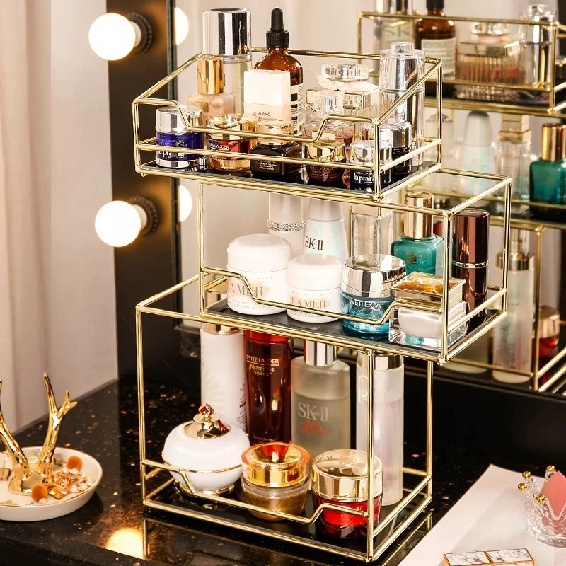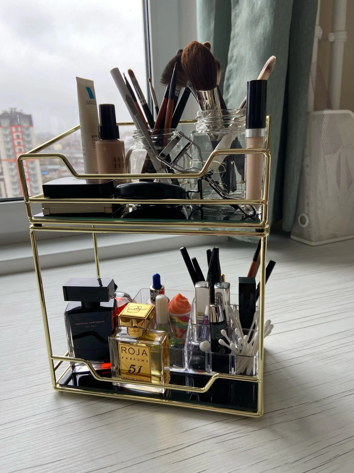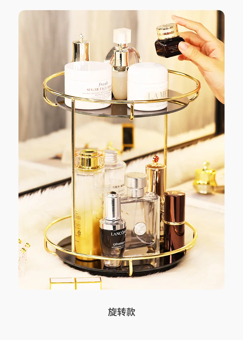 Вращающаяся настольная полка для хранения косметики, 2 яруса, в скандинавском стиле