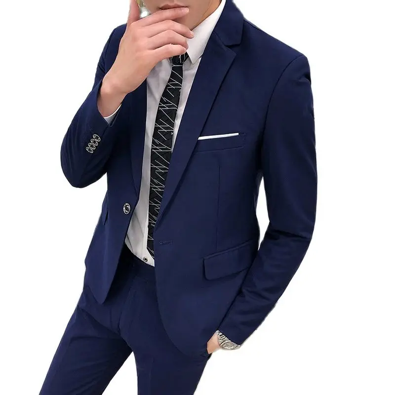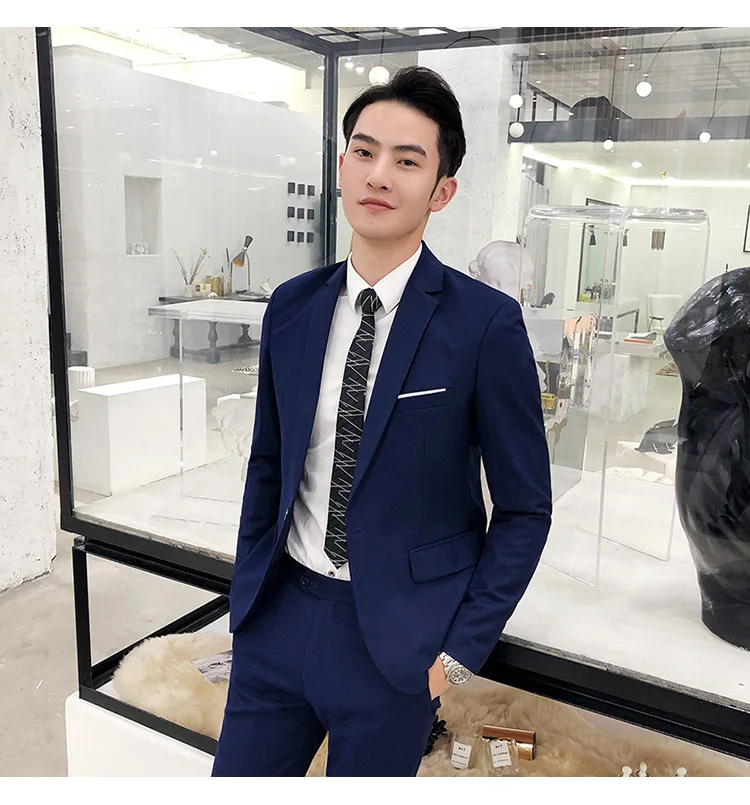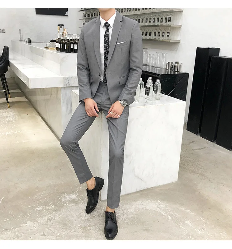 (Пиджак + брюки) Модный эксклюзивный однотонный повседневный деловой мужской костюм для жениха свадебный мужской официальный блейзер из искусственной кожи 2 шт. в комплекте