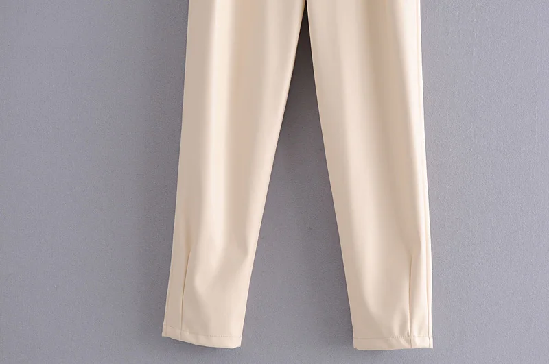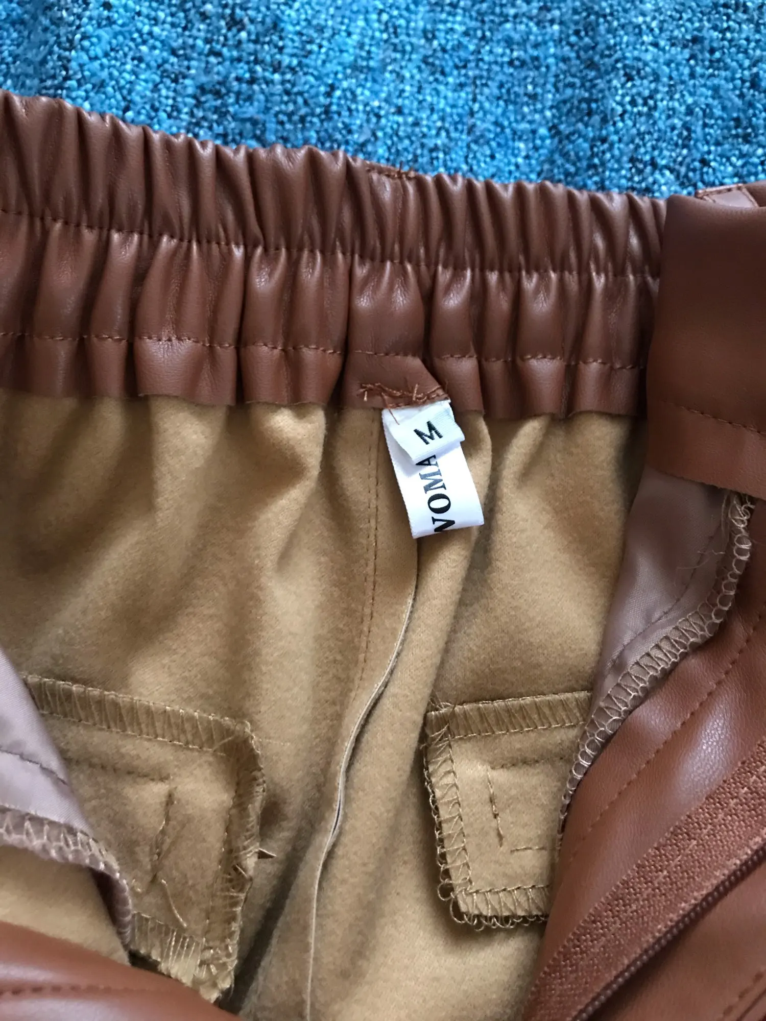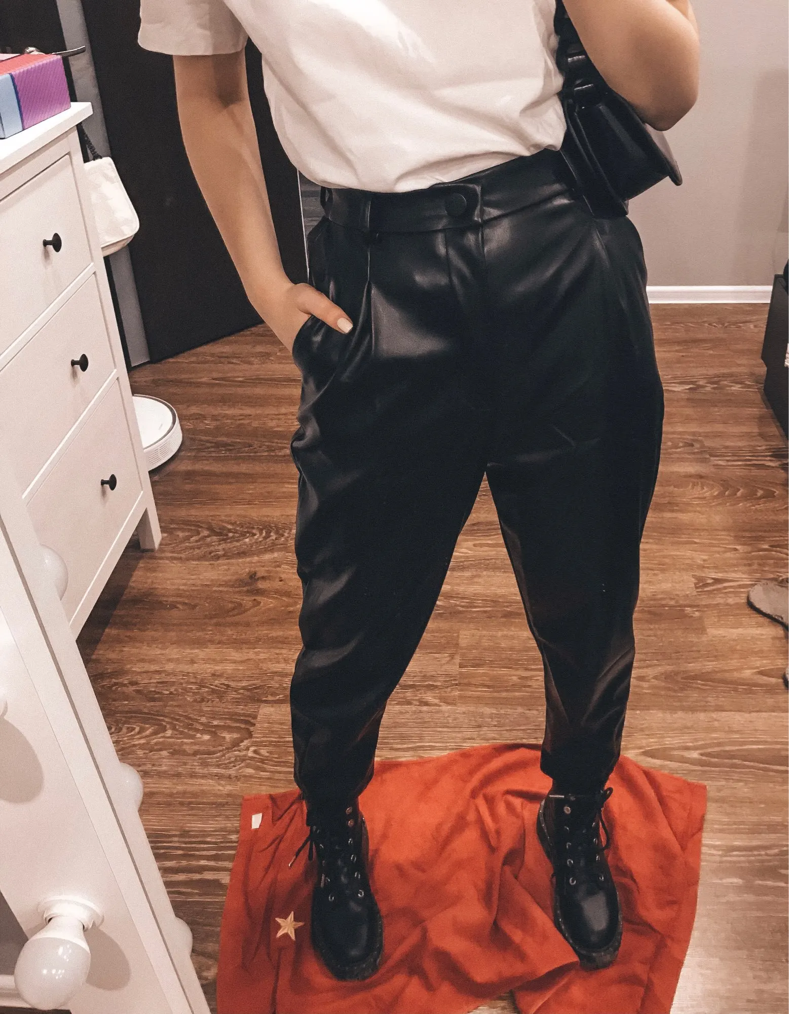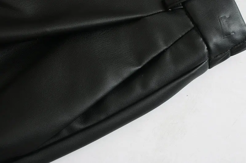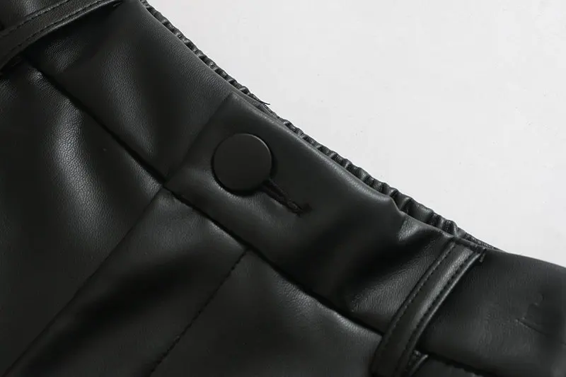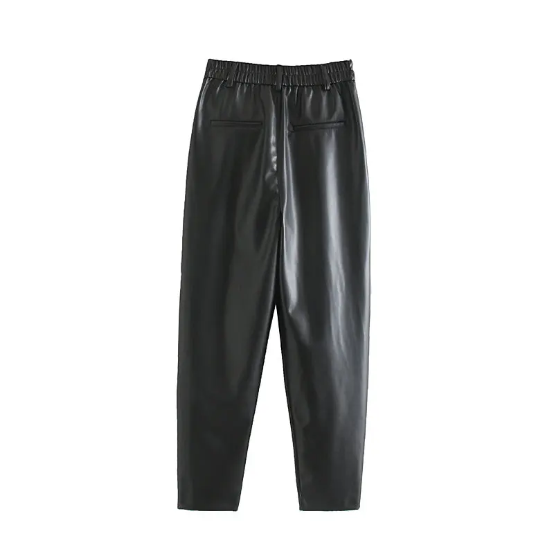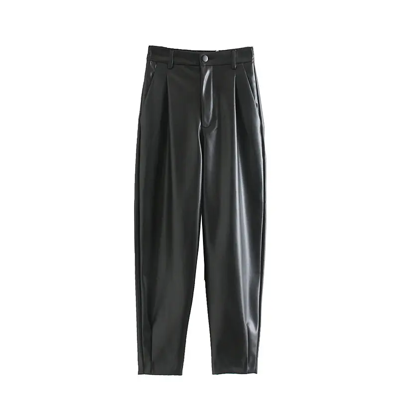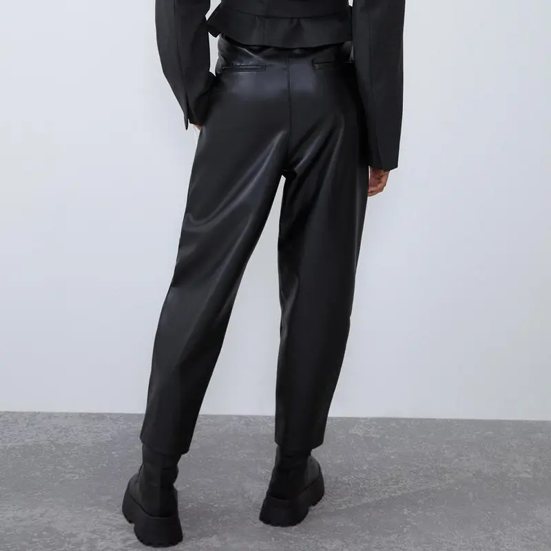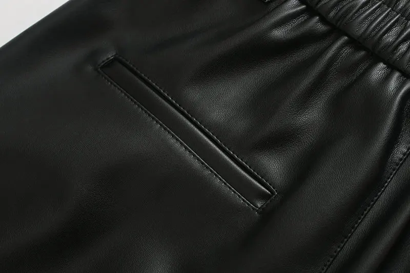 Брюки женские из искусственной кожи, с высокой талией, черные, Осень-зима, 2021