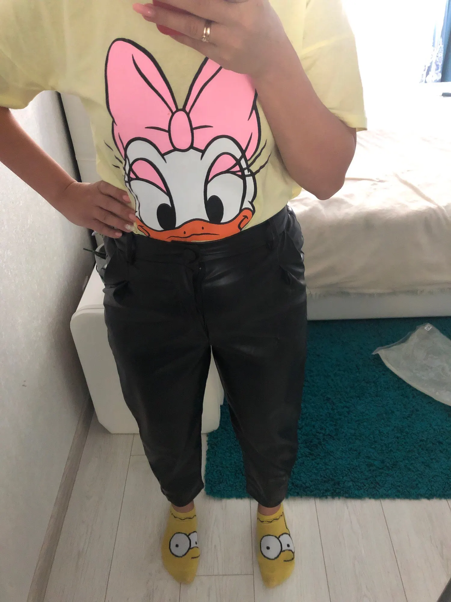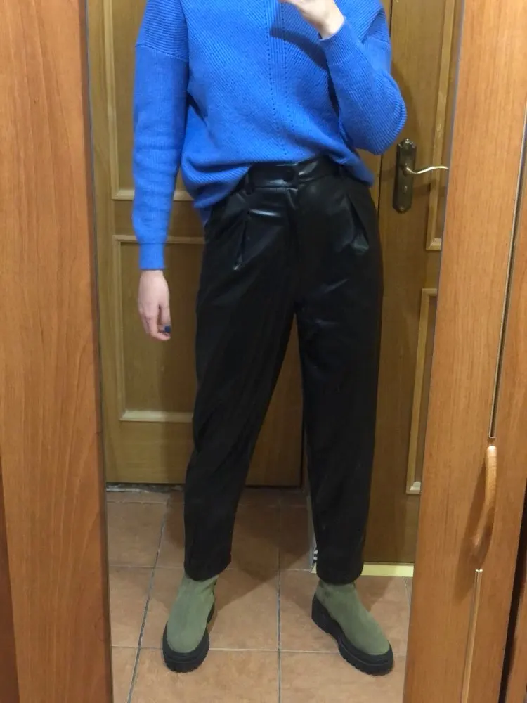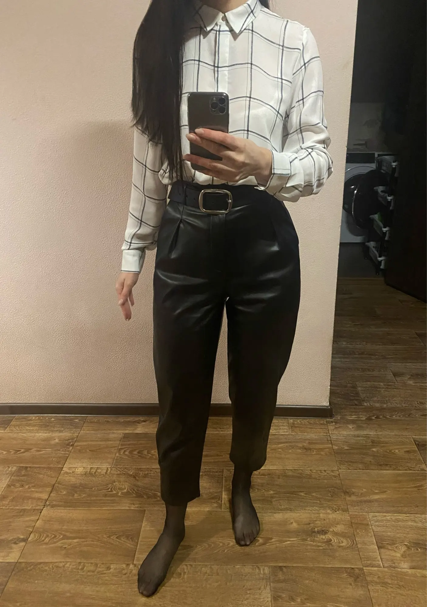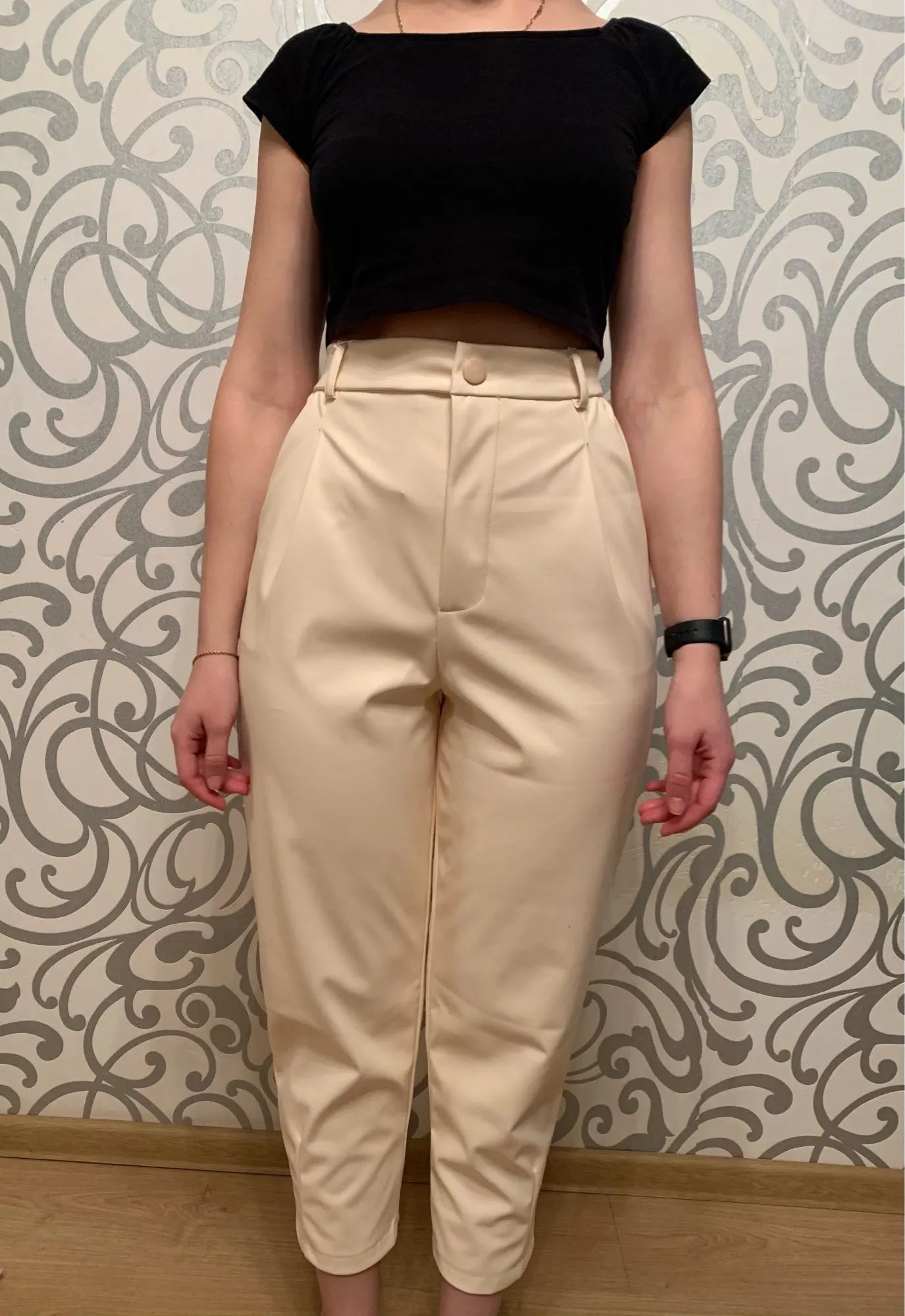 Брюки понравились. С размером угадала. На параметры 66-90 см и рост 172 S-ка села великолепно, хороший крой, нигде не давит и не висит,длина 7/8,с ботинками отлично. Кожзам довольно плотный, но мягкий, нет дешевого блеска. Доставка быстрая - 12 дней до Москвы.