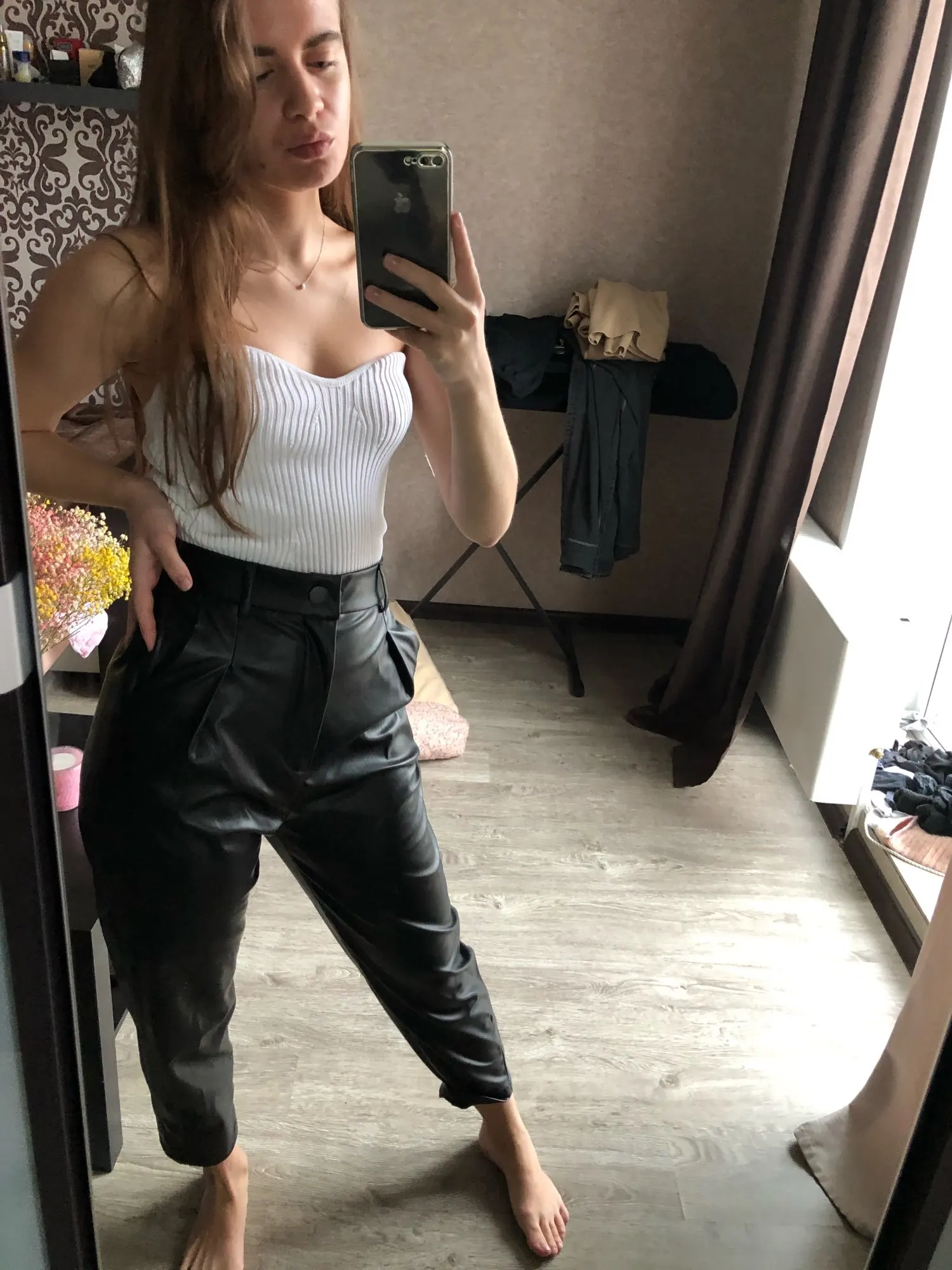 На одном фото-отзыве мне показалось, что брюки размера s на параметрах 67-89 сидят плотно, и я заказала m. Оказались очень велики. Вернула. К качеству претензий нет - строчки ровные, кожа приятная. мой рост 160