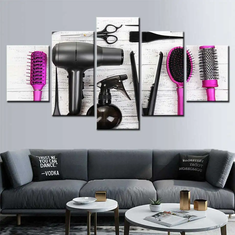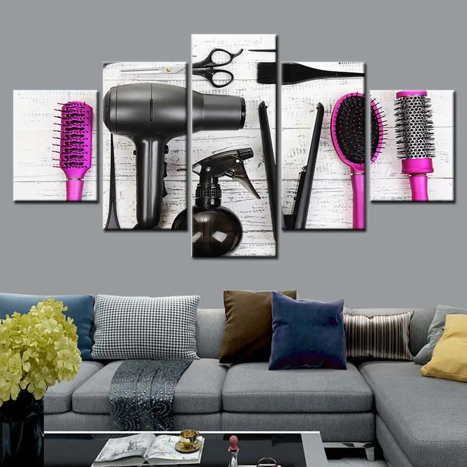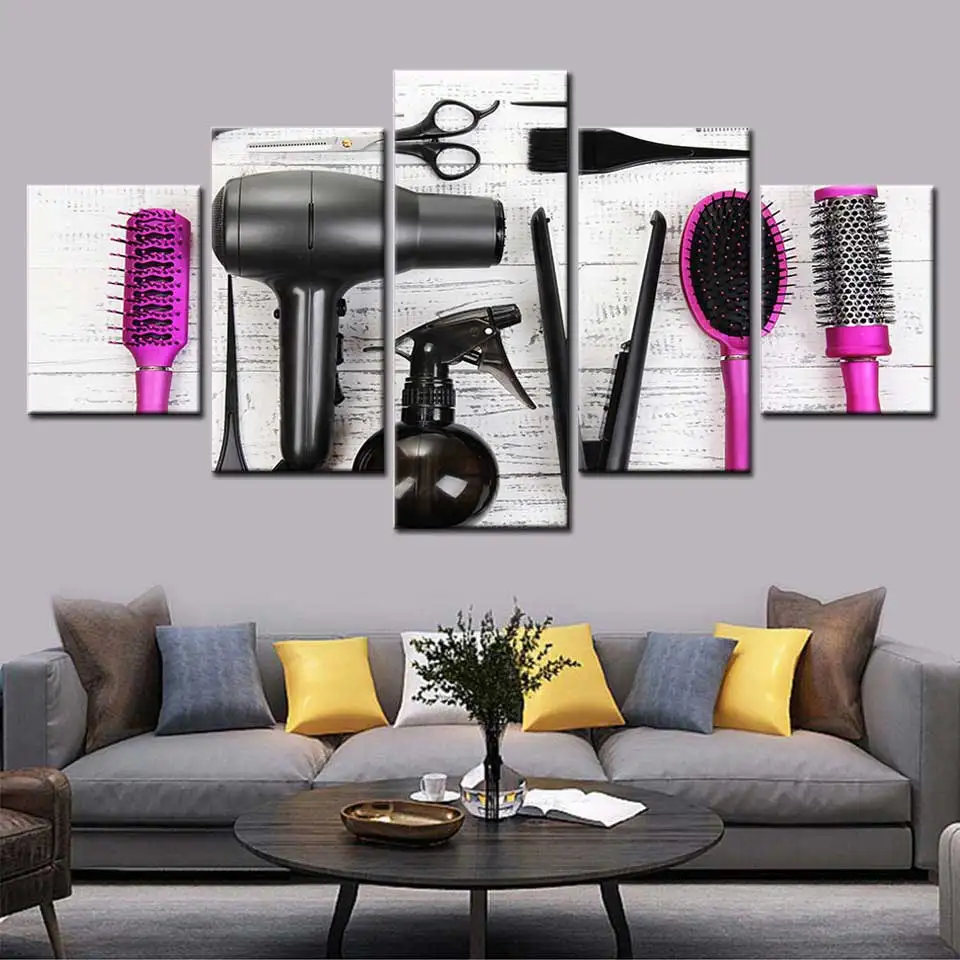 Современная Картина на холсте, 5 шт., инструменты для парикмахерской, ножницы, фотопечать, Парикмахерская, салон красоты, настенный плакат