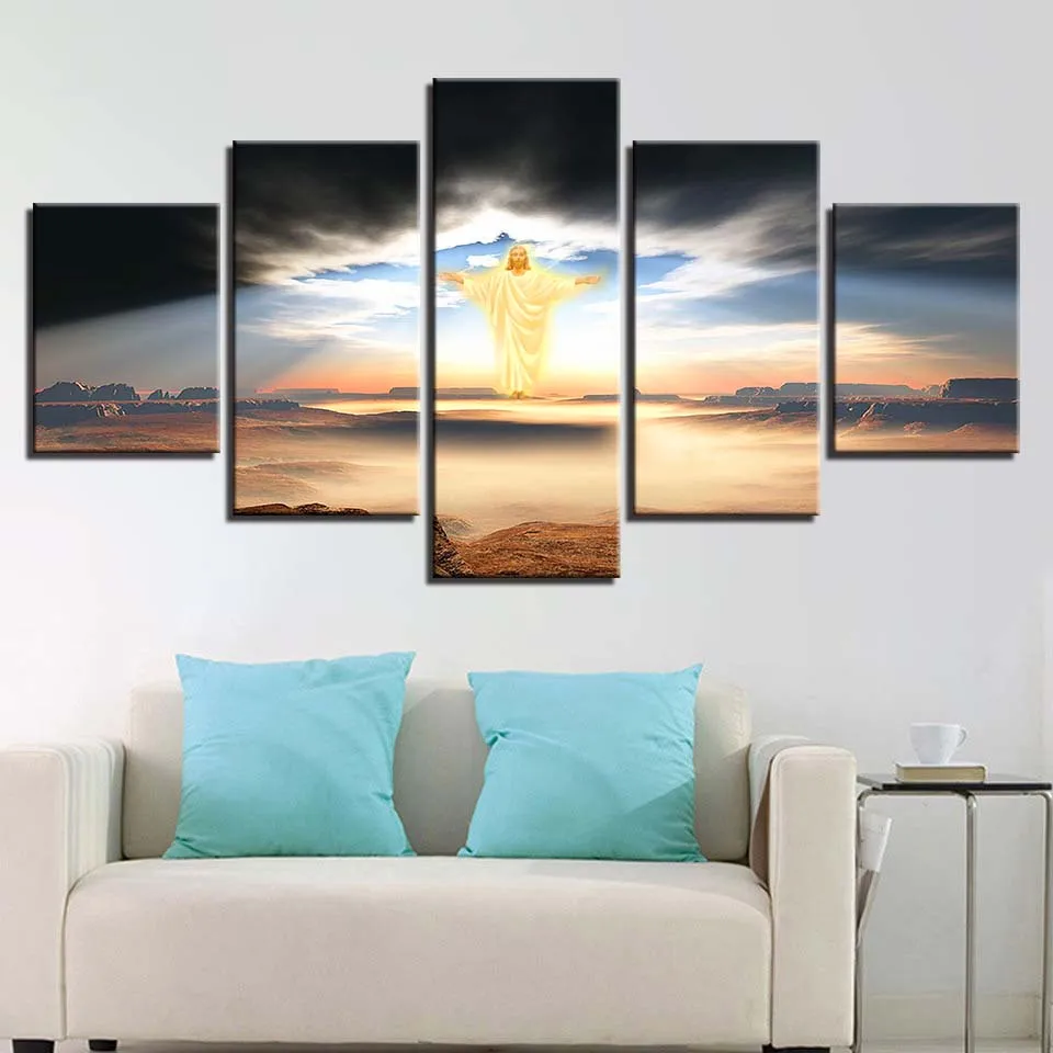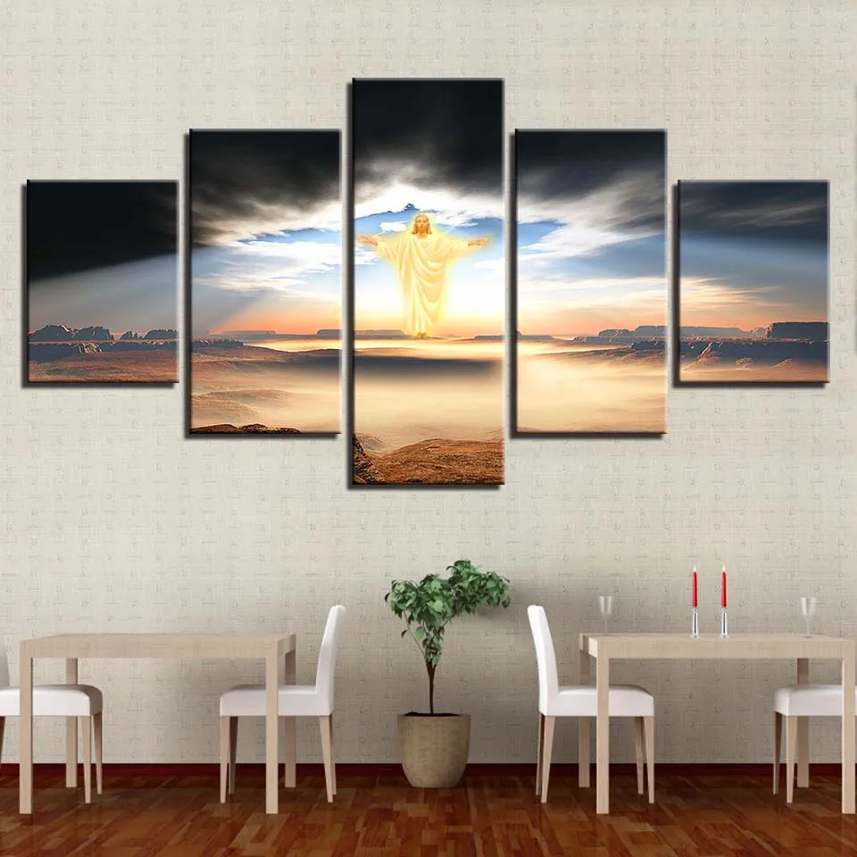 Настенная живопись на холсте, HD печать, домашний декор, 5 шт., Иисус, модульные фотографии, Будда, художественное оформление, ресторан, креативный постер, рамка