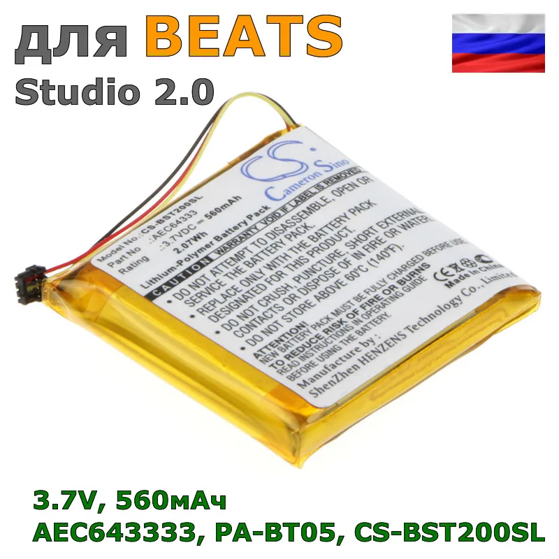 Емкость: 560mAh, 3.7VТип: Li-PolymerРазмеры: 31.58 x 31.9 x 5.6ммВес: 10гСертификаты соответствия (Certificates): CE, FCC, RoHS, РСТПроизводитель: Cameron SinoГарантия: 12 мес.Подходит для BEATS Studio 2.0